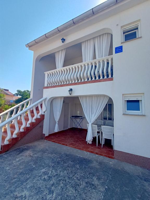 Newly equipped apartments with a large fenced yard, on the island of Vir, which is connected to the mainland by a bridge. We offer three apartments. Each of the apartments has its own terrace. Barbecue to use. They are equipped with quality kitchens, LCD TV with satellite, air conditioning, wi-fi, refrigerator with freezer. Sun loungers and parasols are provided for use in the apartment. The beach is pebble (crystal clear), 80m from the accommodation. Close to shops 150m. The city center is 3-5 minutes away by car. Accommodation and surroundings ideal for a family, large parking provided in the yard. View of the sea, Pag and Velebit. Near Vir adrenaline park, fun for the whole family. 20 km to the city of Zadar, which is rich in diverse content. Tourist tax included in the price.