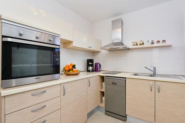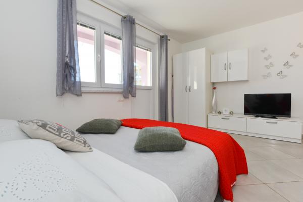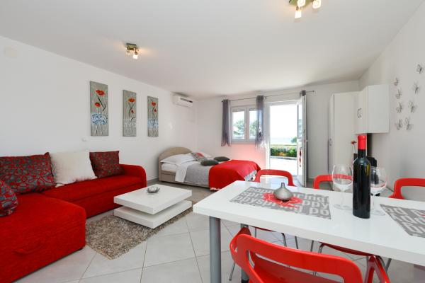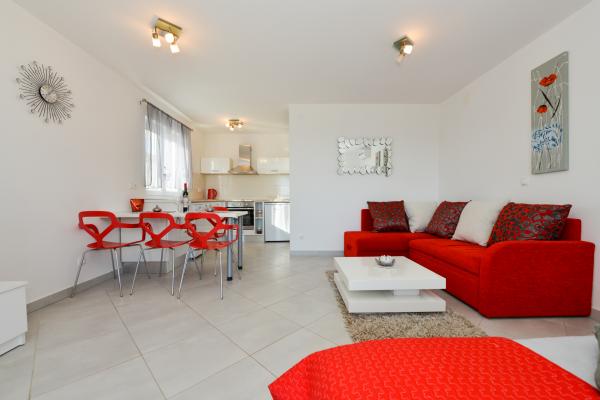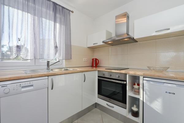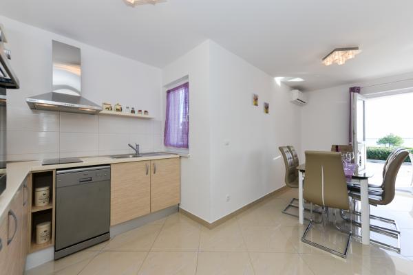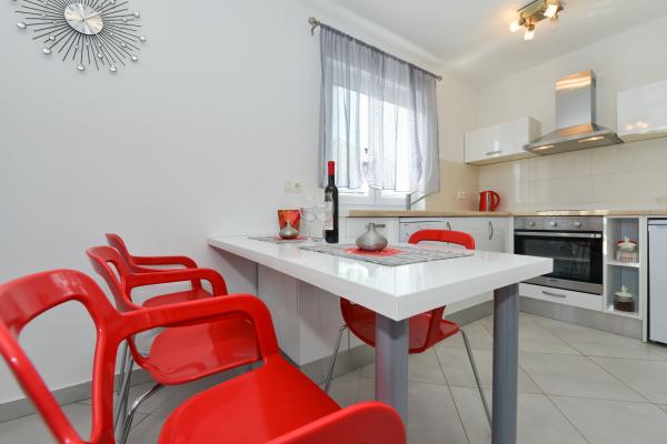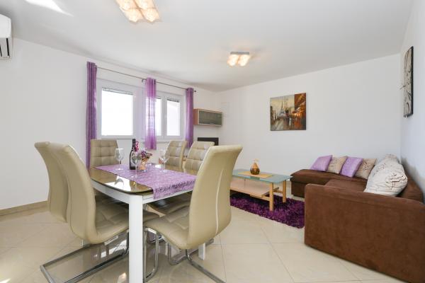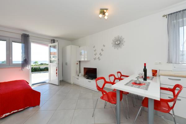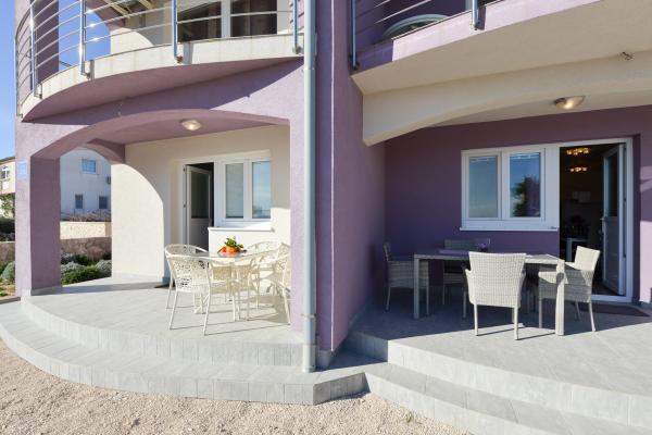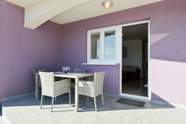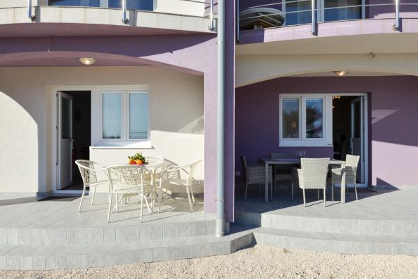 Modernly equipped apartments in a quiet part of the island of Vir, located only 300 meters from the center, 70 meters from the sea and the pebble-sand beach. . The apartments are equipped with all appliances, such as a washing machine, microwave oven, etc., and there is a dining table on the terrace.