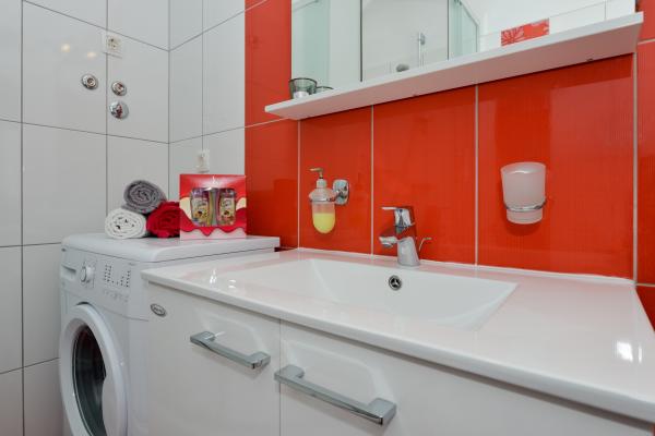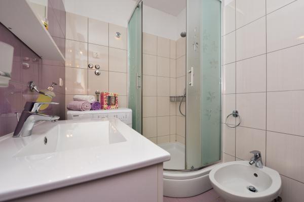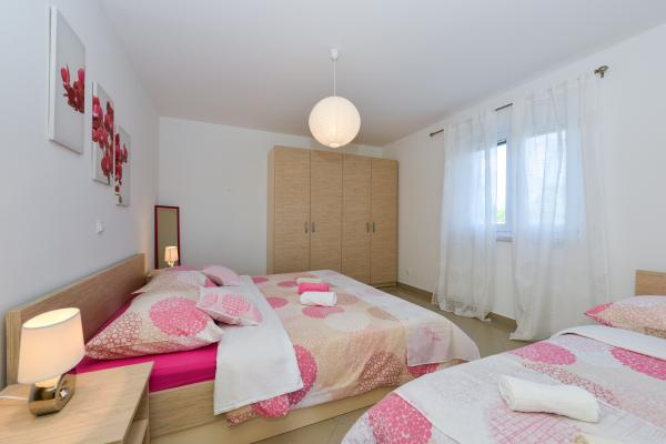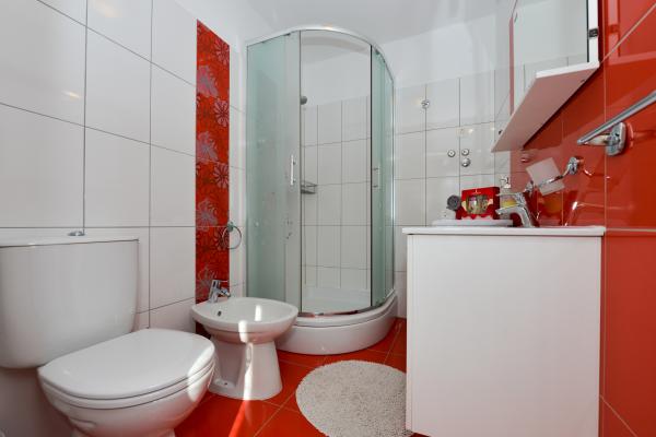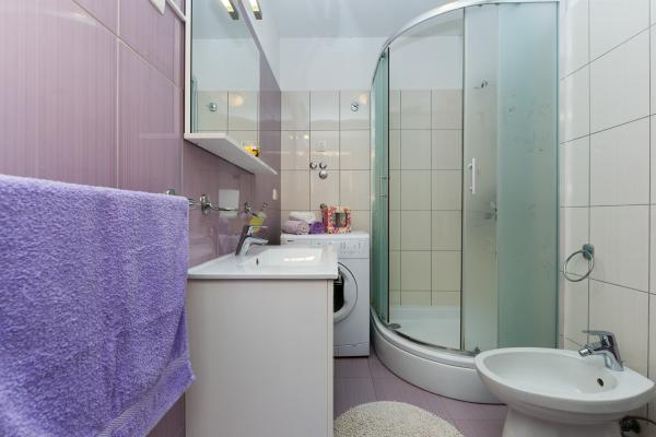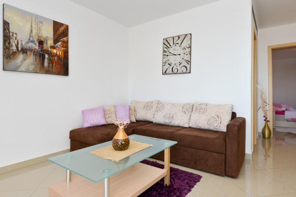 Beautiful clean new apartment with sea views. Very nice owner. On arrival we had chilled beer and juice. Quiet location, close to the beach - about 50m. Very few people on the beach. Pebble beach with sand in the sea. Water very clean. There were no bins on the beach, which was reflected in the loose garbage at the entrance to the beach. Not far from this beach is the beach core (it was very crowded, noisy) and near it bars, market and attractions (water bikes, bouncy castles, semi-submarine, scooters, etc ..) Shop and bakery about 600 m from the accommodation. If you buy glass bottles, you need to keep the block otherwise they will not take them back.