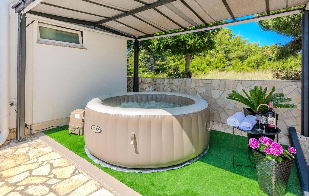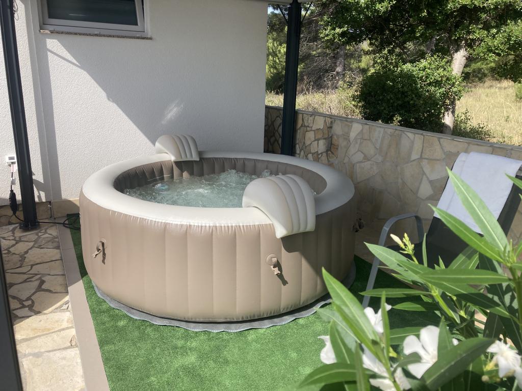 Apartments "Nella" are located on the southern part of the island of Vir, in the settlement "Kozjak", near the historical fortress "Kaštelina", only 50m from the sea. We offer three apartments, two are on the first floor and one is on the ground floor. Each apartment has a separate entrance and its own terrace with an awning and seating furniture, which enables guests to have a pleasant stay and enjoy the outdoors throughout the day. For our guests, the offer includes a whirlpool jacuzzi! Give yourself the vacation you want: after a walk or a bike ride, enjoy and relax in the hydromassage jacuzzi! The apartments are newly renovated, modern and fully equipped (wi-fi, air conditioning, SAT TV, bed linen, etc.). They are located in a quiet street, and there is a restaurant and a shop in the immediate vicinity. Guests are provided with free parking in the yard. The beach "Kozjak" is 50m away, it is landscaped, partly concrete and partly sandy, ideal for children; and all along the settlement "Kozjak" (the cape of the island) are landscaped promenades and beaches. Dear guests, welcome!