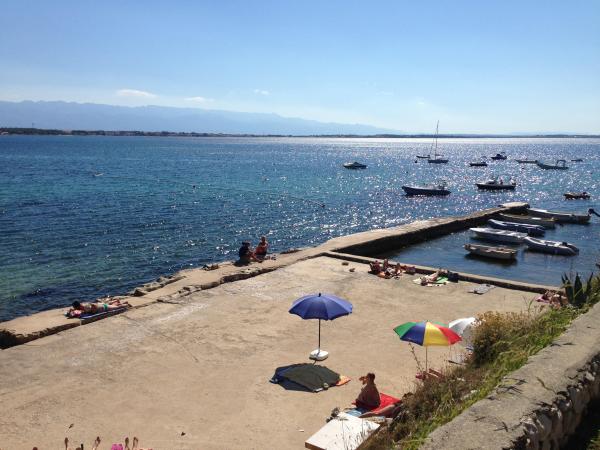 We stayed with our grandparents in August this year with three grandchildren. We were at Vir for the first time. What we knew about the apartment by pictures and description, we got it. The hospitality and kindness of the owners is important. Both beaches which are closest to the apartment have a normal entrance to the sea, without hedgehogs or sharp rocks. However, if you are walking a meter from the concrete beach, and you had a wooden pier to jump into the water. Believe us, the four "men " were very happy about that. We really recommend this apartment.