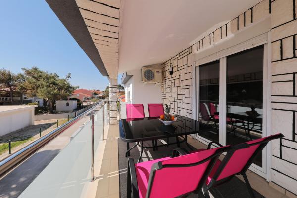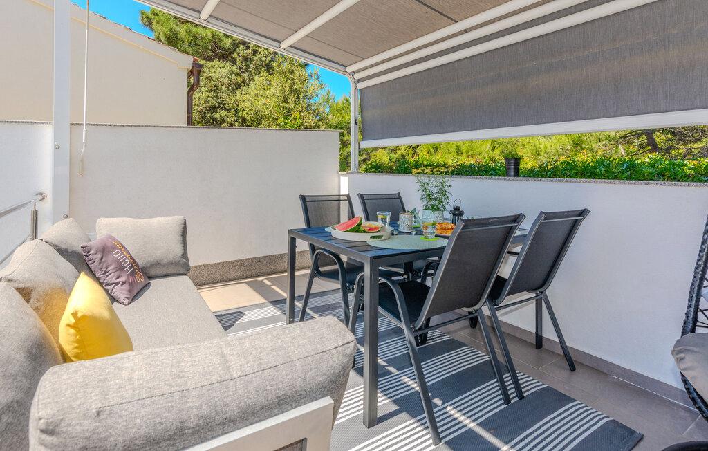 The apartment is very tidy, modern and clean. They even have two terraces, so there is always shade somewhere. The owners are very friendly, always available, upon arrival we were greeted with a delicious welcome, including warm home-made croissants. The sea is a minute's walk away, but there is also a jetty on the beach which is great for youngsters to jump into the water. I recommend! Tjaša
