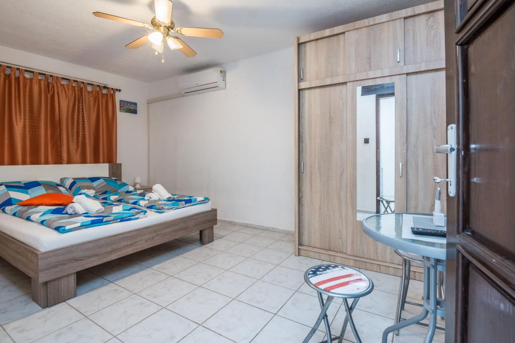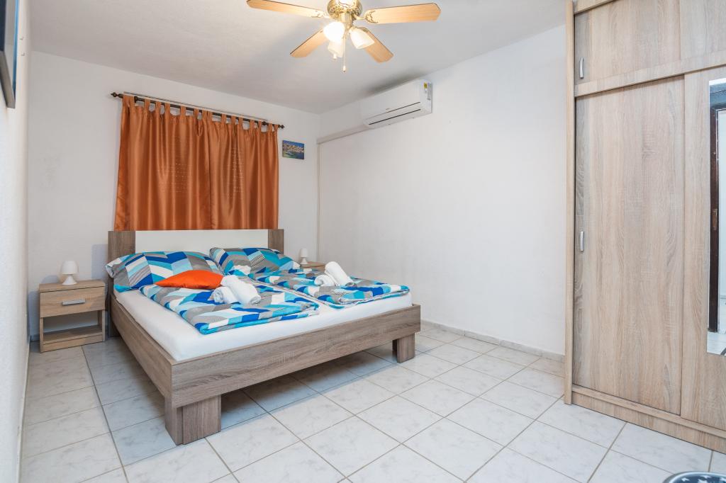 Fully equipped apartments in a quiet street located 60 meters from the beach. Restaurants, cafes and shops can be found within a 5-minute walk. Each room is air-conditioned. The apartments are located on the ground floor.