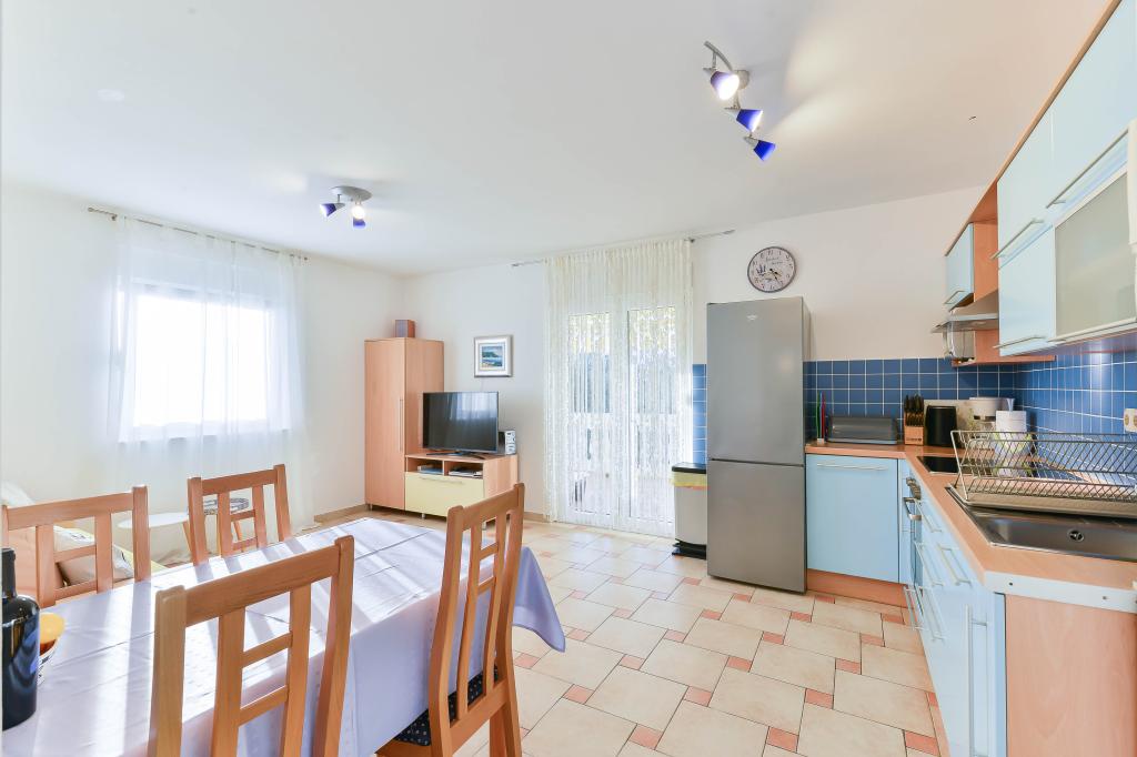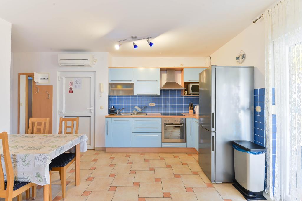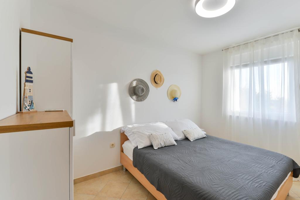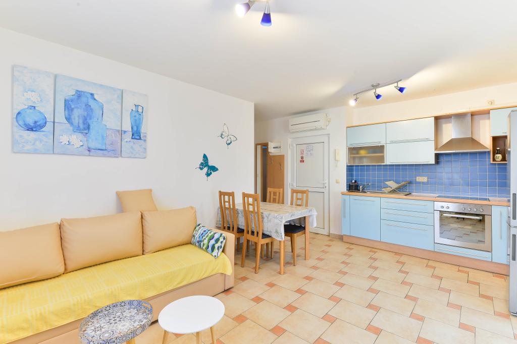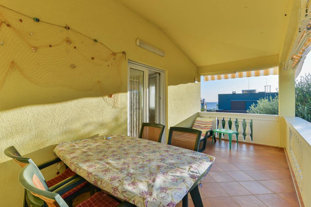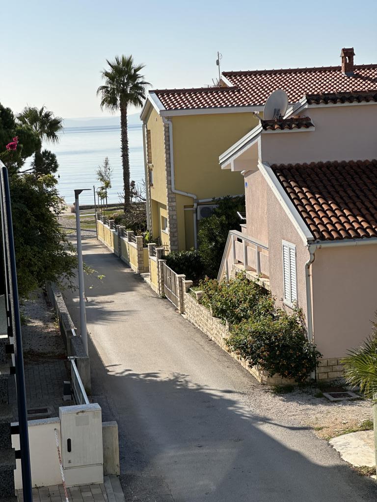 Fully equipped apartments, each room has its own air conditioning and TV, located 40 meters from the sea. Bar, restaurants and supermarket are within walking distance. The beach is pebbly and concrete, a ten-minute walk away is a sandy beach. The house has its own parking, grill and children's swing in the garden. Beach chairs, umbrellas and bicycles are available to guests.