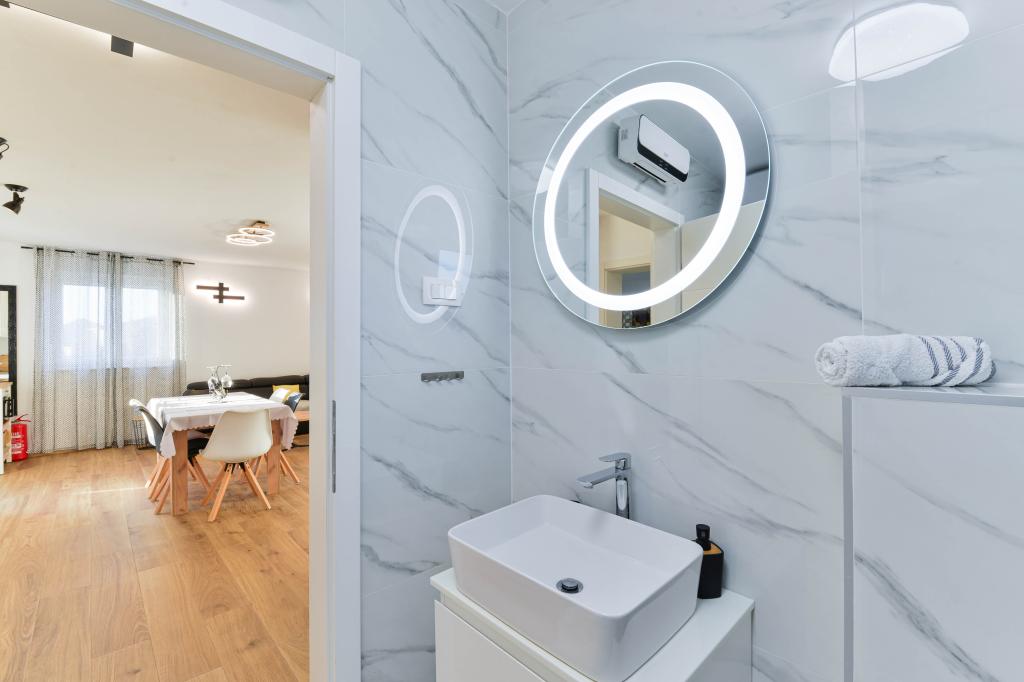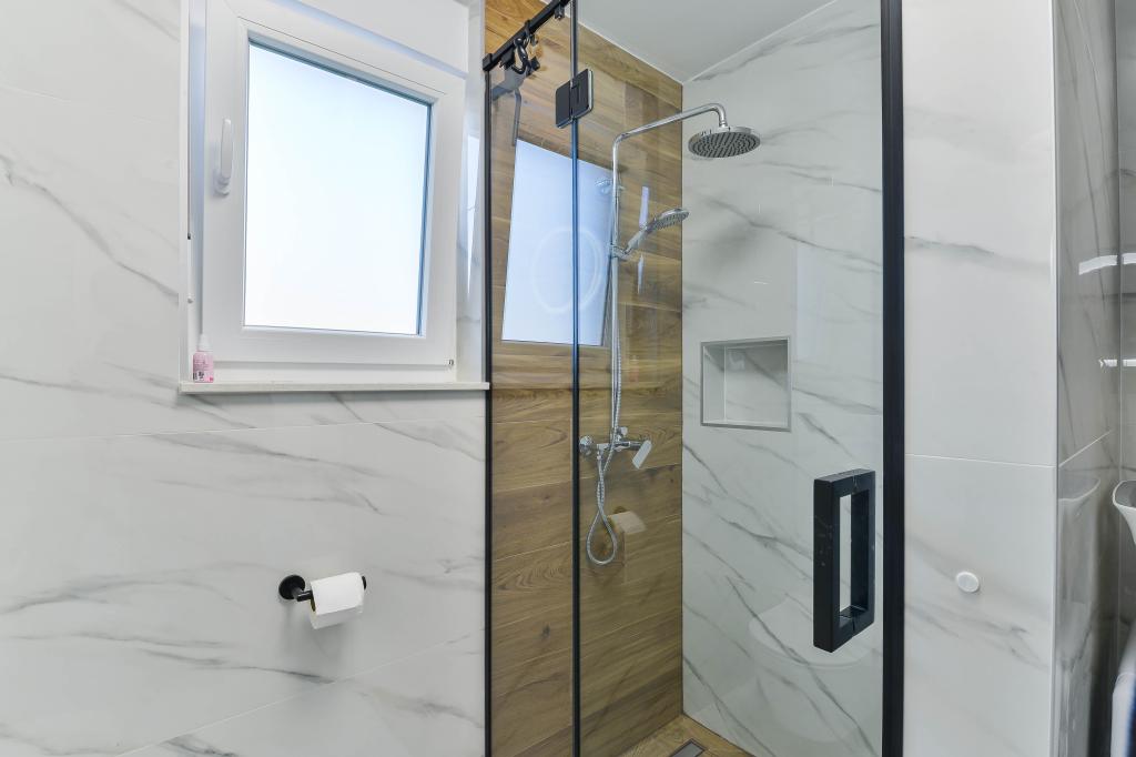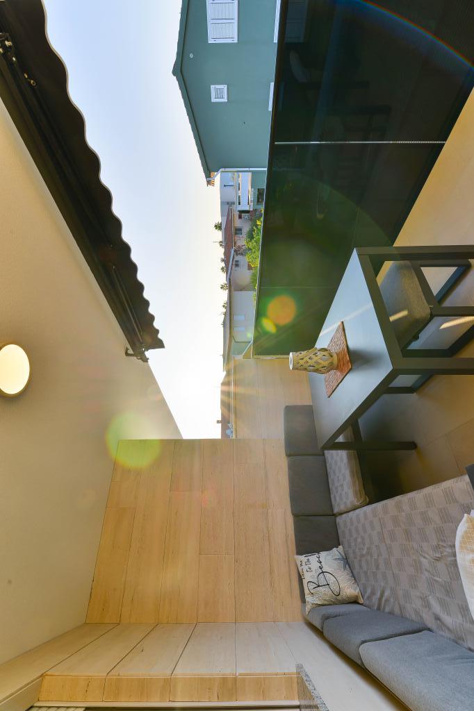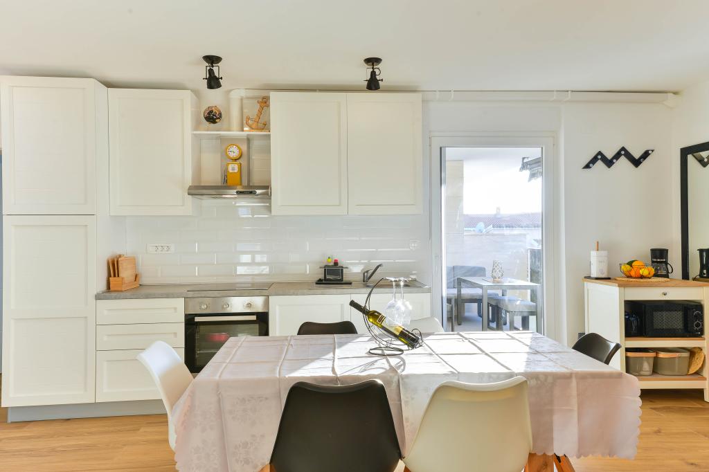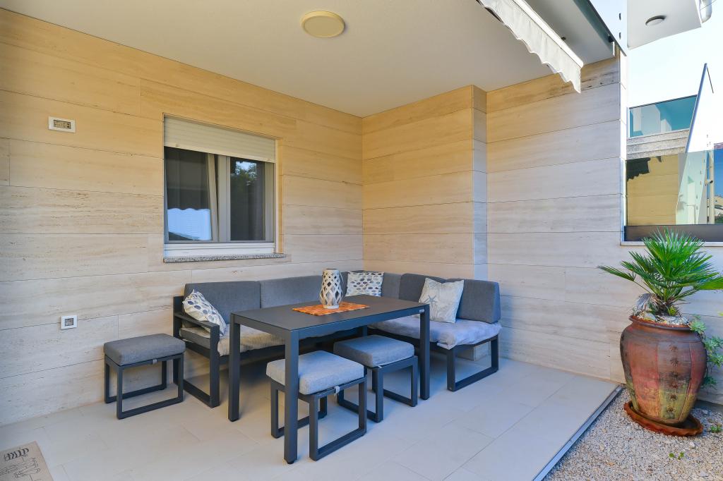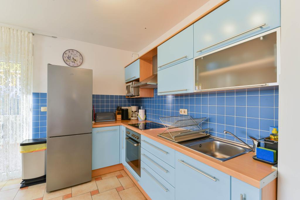 Fully equipped apartments, each room has its own air conditioning and TV, located 40 meters from the sea. Bar, restaurants and supermarket are within walking distance. The beach is pebbly and concrete, a ten-minute walk away is a sandy beach. The house has its own parking, grill and children's swing in the garden. Beach chairs, umbrellas and bicycles are available to guests.