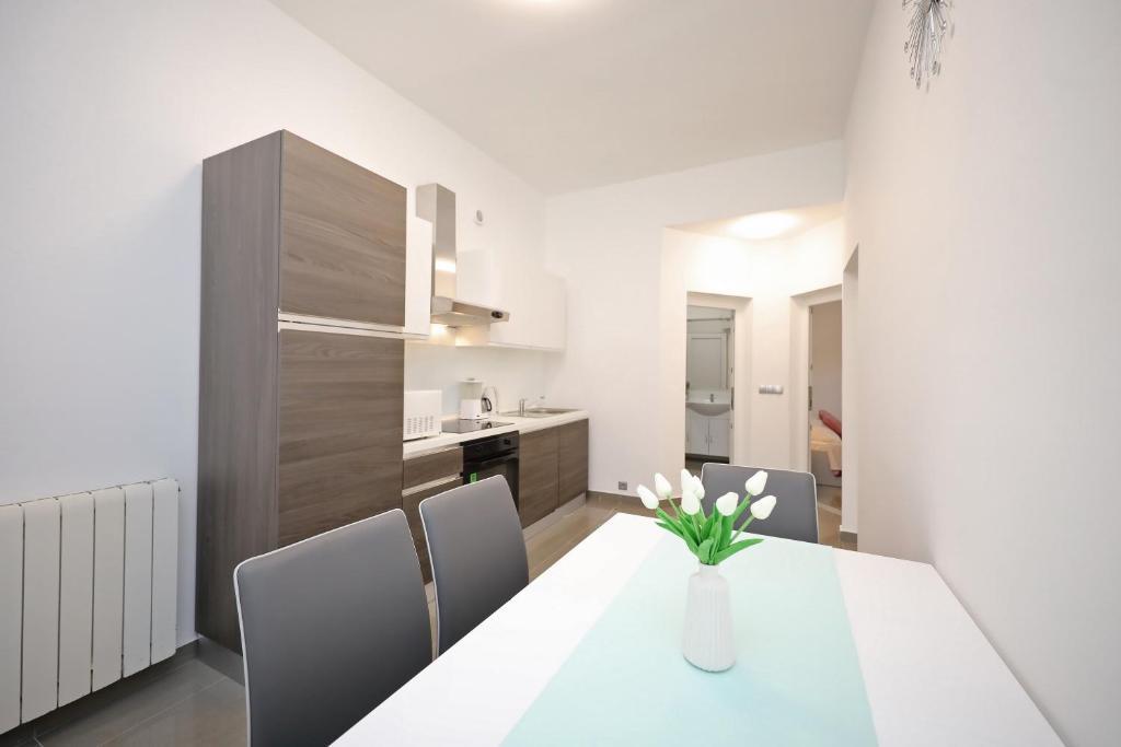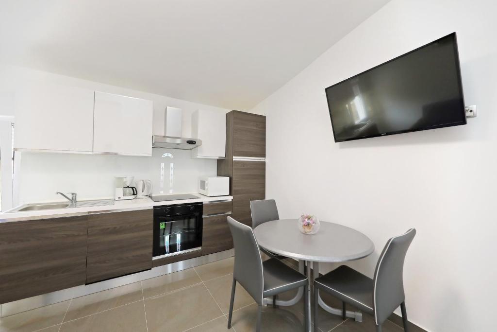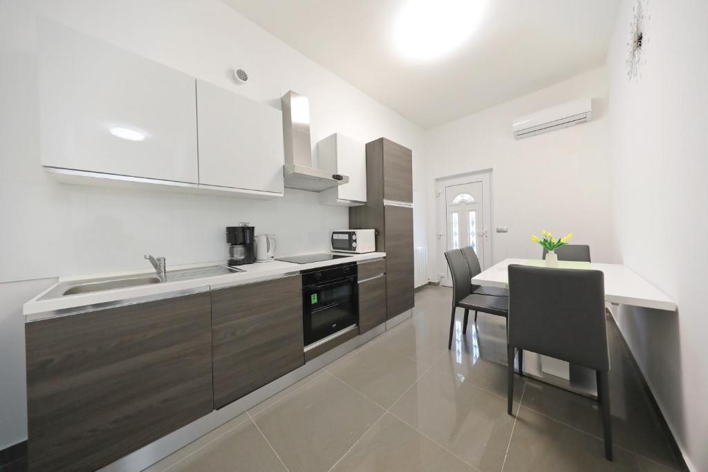 Apartment for 6 people. Before arrival, great contact with the owner. Best regards Andel. A wonderful stay. The owners were very nice and helpful. The apartment itself is clean, spacious, equipped with a dishwasher, washing machine, coffee machine, toaster, microwave, air conditioning and all necessary utensils. additionally, dishwasher tablets, towels, sunbeds. Tasty tomatoes and grapes in the garden for guests. Very close to the Jadro beach. Nearby shops, bakeries and an infirmary. I sincerely recommend.