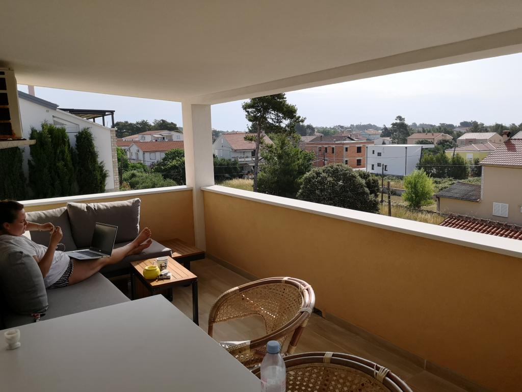 The description of the condominium is exceeded by the actual circumstances. The location is ideal. Whether for shopping, beach, sport tennis, restaurant, bus to Zadar you need a car. Everything was very neat, Möbilar simple, functional and everything is clean and well maintained. Pero, brother of the owner, speaks and understands German (slowly, clearly speak) is very helpful. Whom a hotel is too noisy and impersonal, has little left for camping, but really wants to enjoy his vacation, which is in Mato and Pero right. As a special attraction offers a day trip to Zadar, listen sure to match the "Sea Organ" on the beach promenade. Otherwise I experienced at local restaurants not only disappointment, price / performance / service-everything was perfect. Water quality of a dream, like the beach and the island. The bridge connecting the mainland to ideal erreichen.Meine assessment: best way to a dream vacation