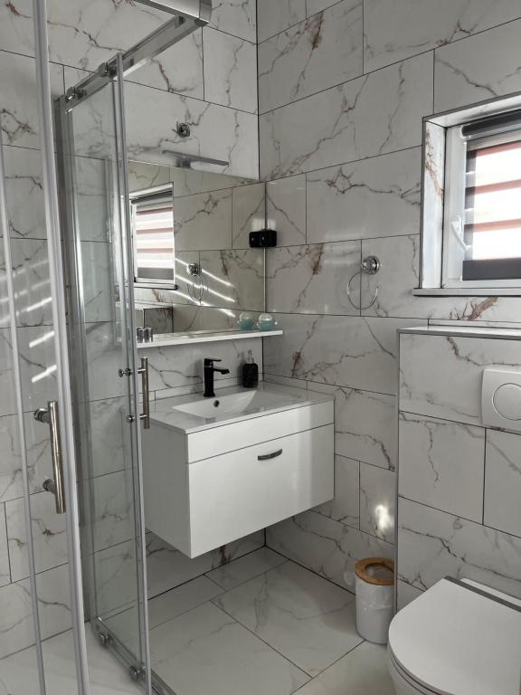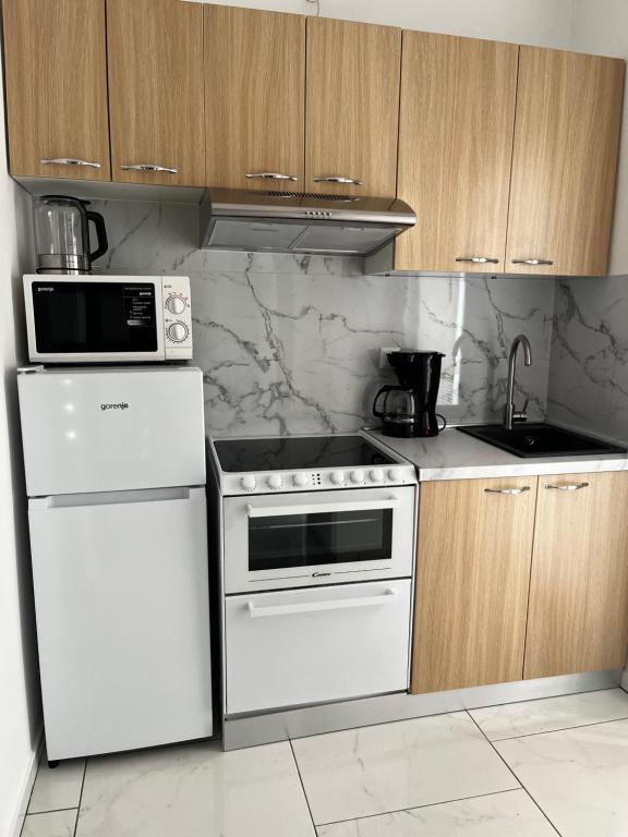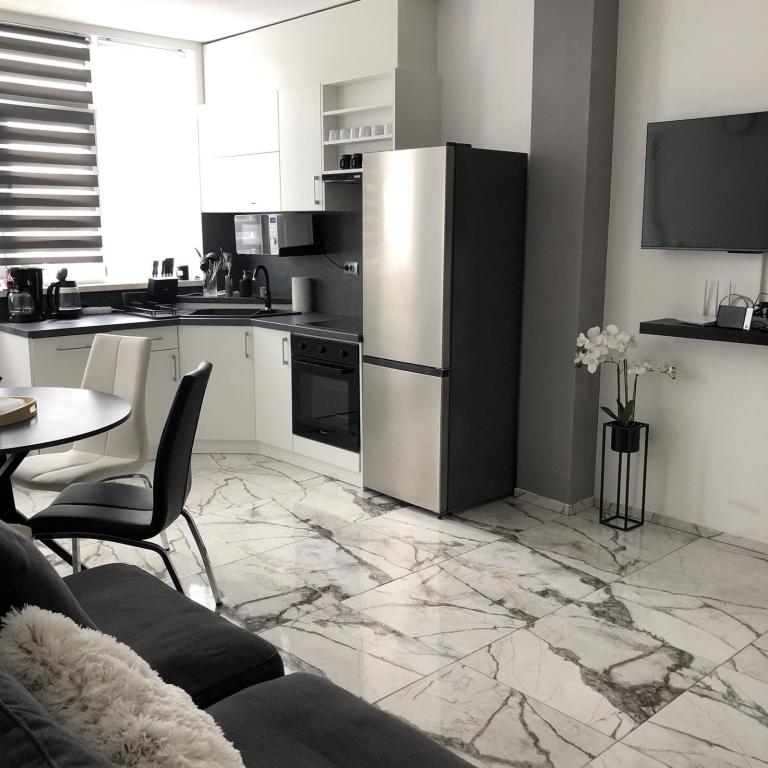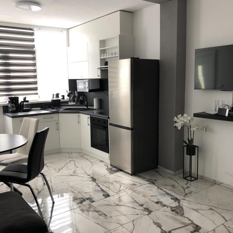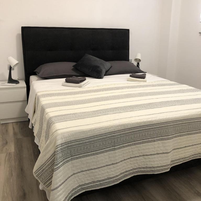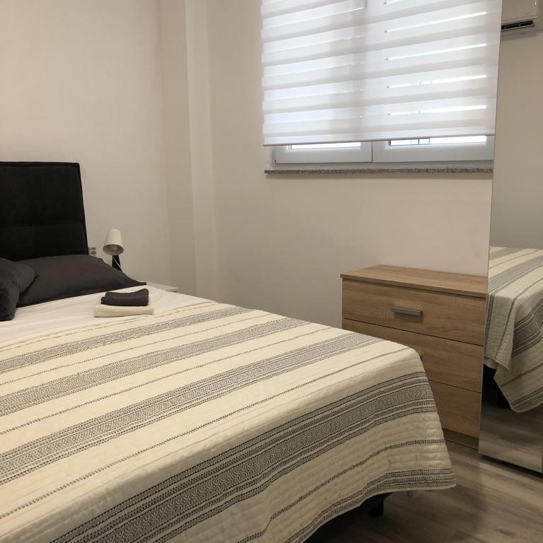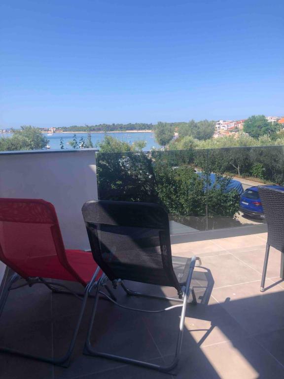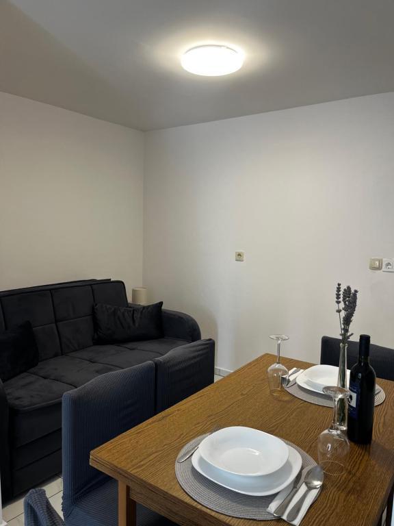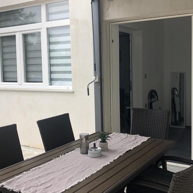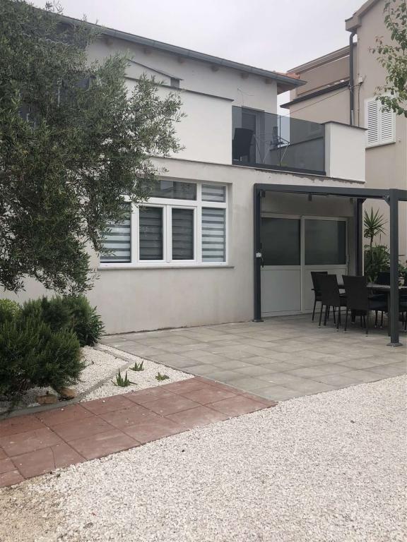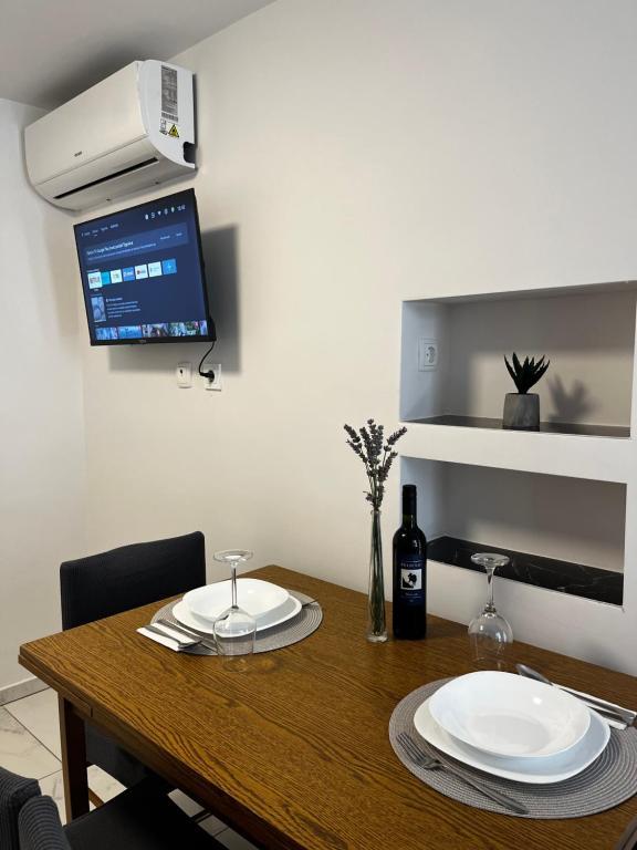 Apartments Šmit are located in the first row to the sea, just a few steps from the city beach Jadro, which makes them an ideal choice for guests who want to be as close to the sea and the beach as possible. Guests have access to a free parking space in the fenced yard of the property, which ensures additional safety and peace of mind during their stay. Each accommodation unit has a terrace with a sea view, a comfortable seating area and a TV. The apartments are fully equipped, and the kitchens include a refrigerator, microwave and all the necessary utensils for preparing meals. Each apartment has a private bathroom with a shower, and all areas are air-conditioned to make your stay comfortable even during warm summer days. In the immediate vicinity of the property, just a 5-minute walk away, there are all the important amenities of the island of Vir – restaurants, cafes, shops, a bakery and a promenade along the sea – which makes Apartments Jadro an excellent choice for couples, families and guests who want a vacation without the need for a car.