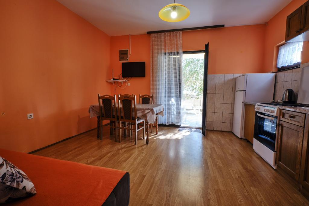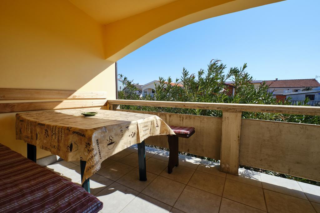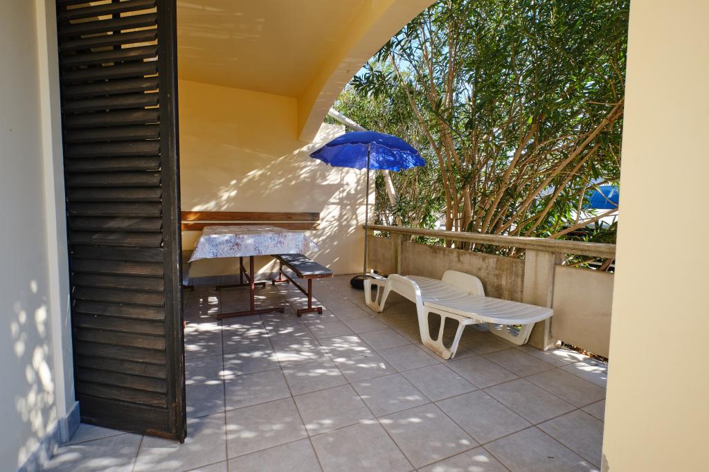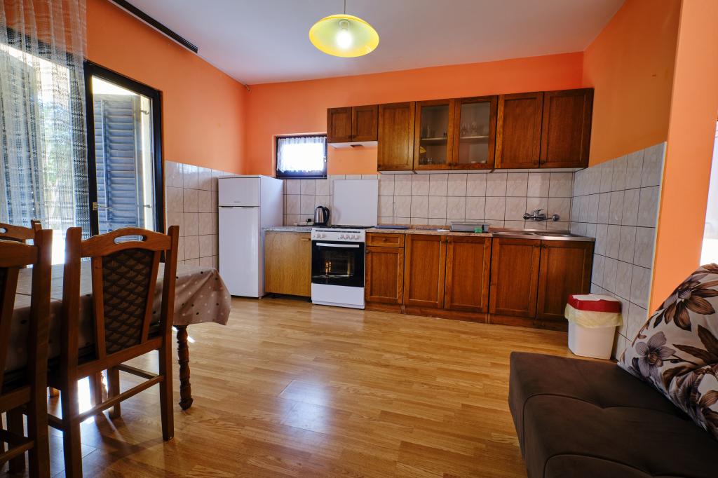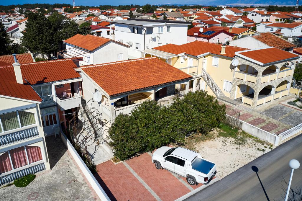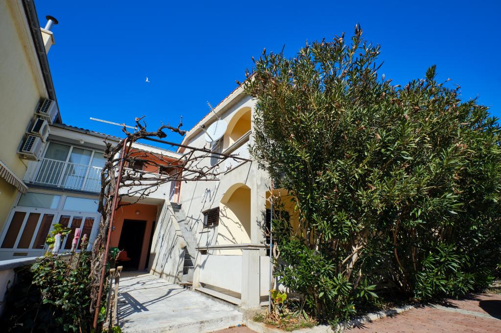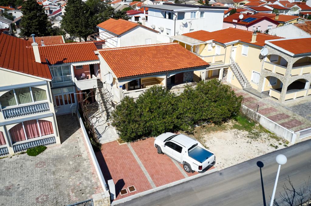 Three apartments in a holiday home on the island of Vir, 200 m from the beach, 50 m from the shop. The apartments have WiFi internet and air conditioning, have separate entrances and are completely separate. Two larger apartments each consist of a bedroom with a double bed, a bathroom, and a living room with a sofa bed (extra bed for two) and a kitchen. The apartment on the first floor has a large balcony, and the apartment on the ground floor has a terrace. There are parking spaces in front of the building. The third smaller apartment is a studio with one large room with a double bed and an extra bed for 1 person (or 2 smaller children) and household appliances, separate bathroom and hallway. The apartment has a small balcony-terrace.