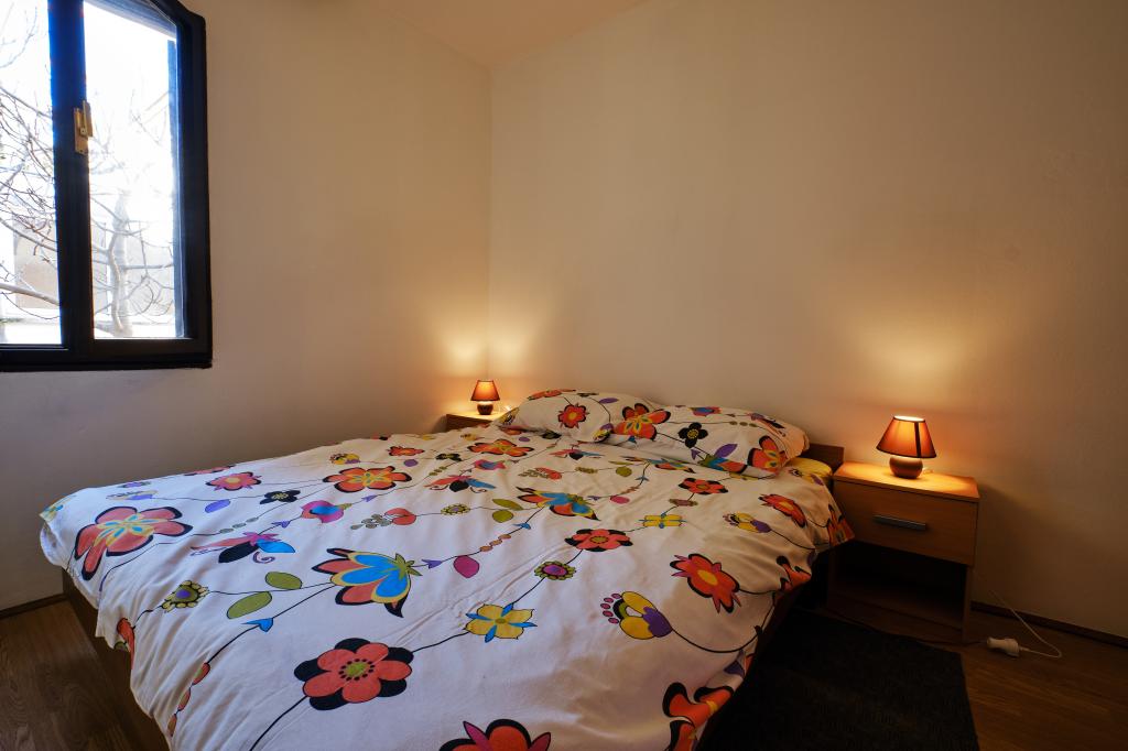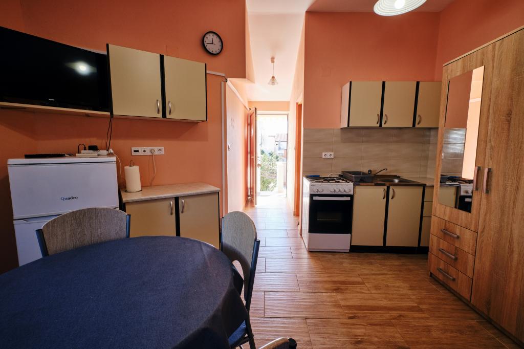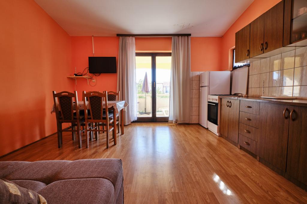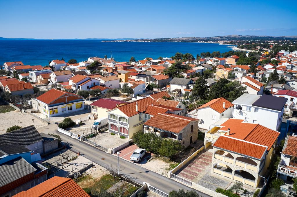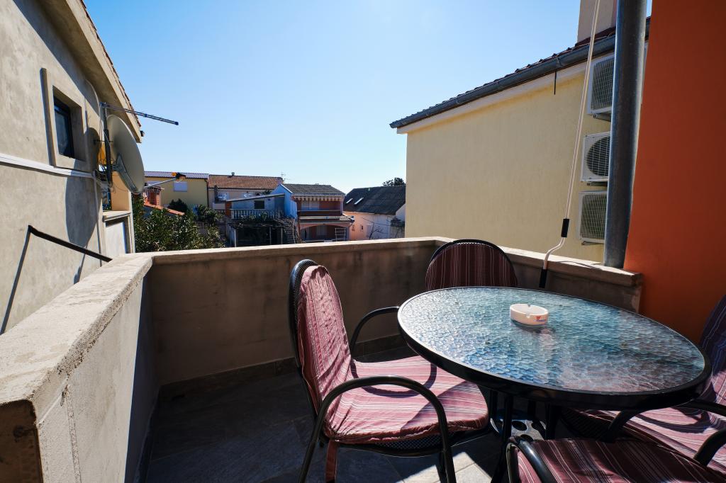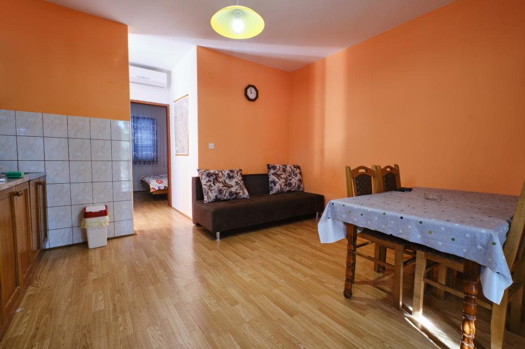 Three apartments in a holiday home on the island of Vir, 200 m from the beach, 50 m from the shop. The apartments have WiFi internet and air conditioning, have separate entrances and are completely separate. Two larger apartments each consist of a bedroom with a double bed, a bathroom, and a living room with a sofa bed (extra bed for two) and a kitchen. The apartment on the first floor has a large balcony, and the apartment on the ground floor has a terrace. There are parking spaces in front of the building. The third smaller apartment is a studio with one large room with a double bed and an extra bed for 1 person (or 2 smaller children) and household appliances, separate bathroom and hallway. The apartment has a small balcony-terrace.