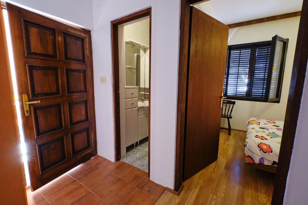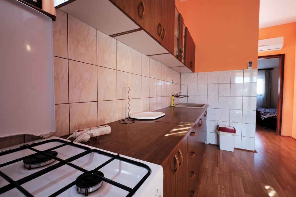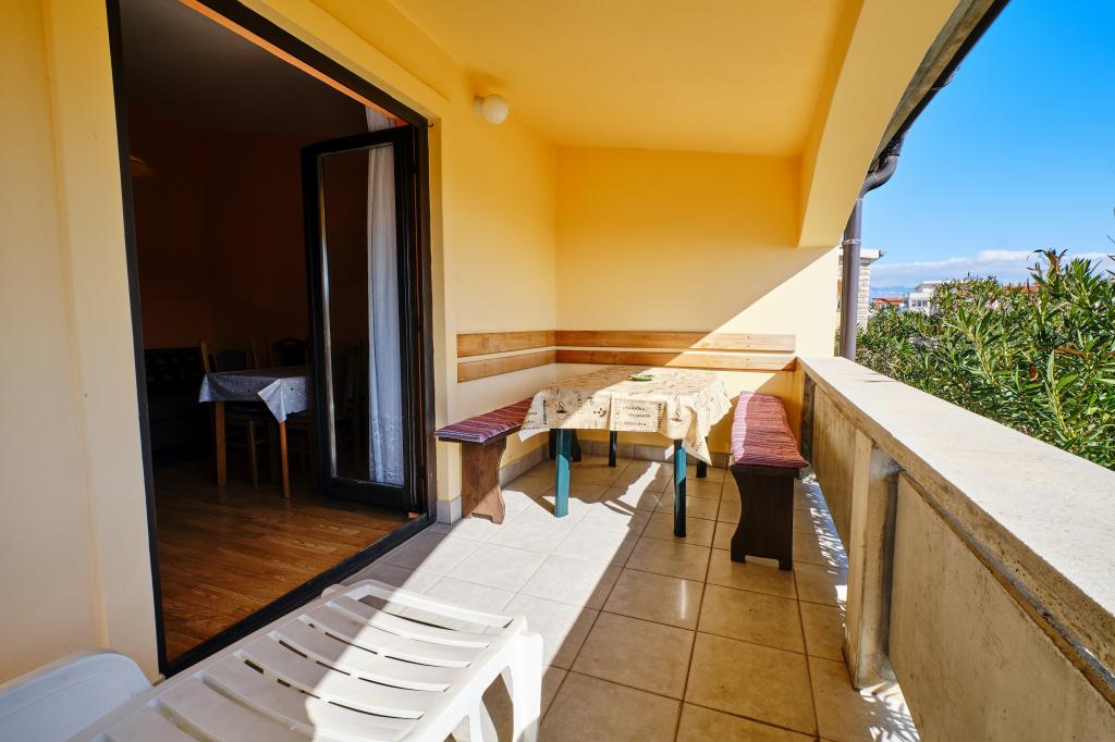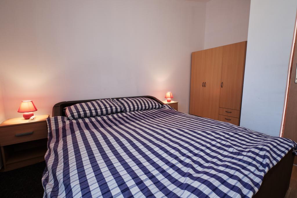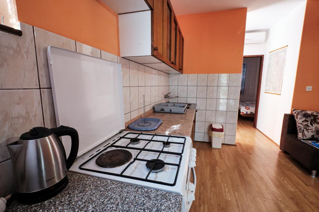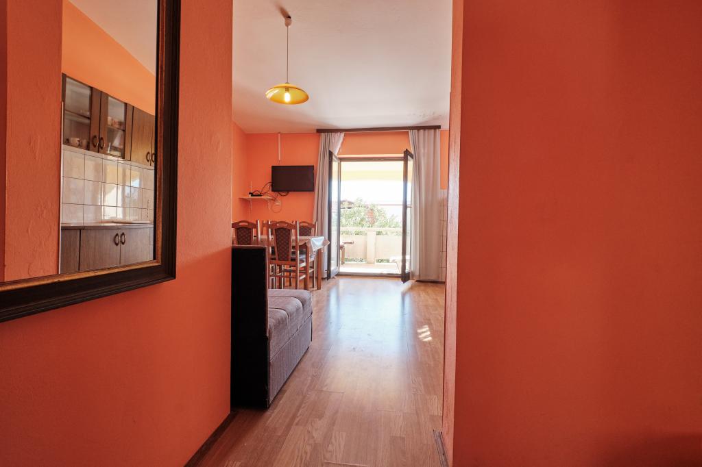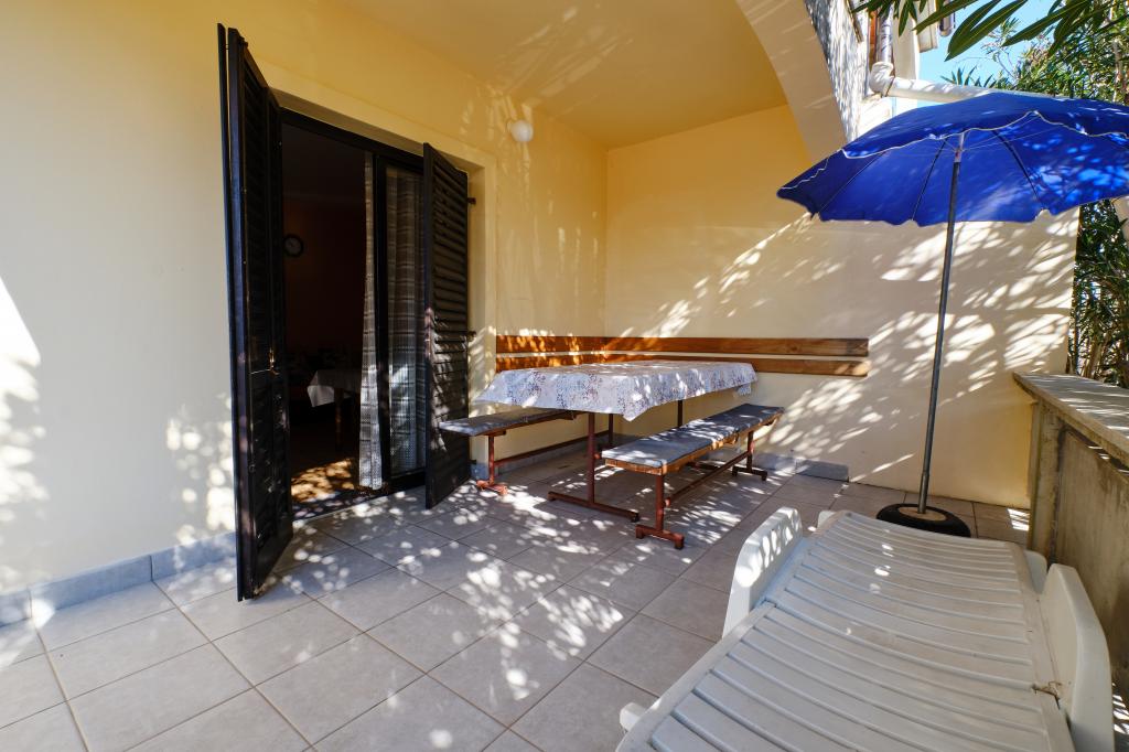 Three apartments in a holiday home on the island of Vir, 200 m from the beach, 50 m from the shop. The apartments have WiFi internet and air conditioning, have separate entrances and are completely separate. Two larger apartments each consist of a bedroom with a double bed, a bathroom, and a living room with a sofa bed (extra bed for two) and a kitchen. The apartment on the first floor has a large balcony, and the apartment on the ground floor has a terrace. There are parking spaces in front of the building. The third smaller apartment is a studio with one large room with a double bed and an extra bed for 1 person (or 2 smaller children) and household appliances, separate bathroom and hallway. The apartment has a small balcony-terrace.