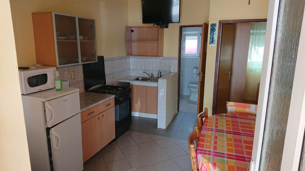 The apartments are clean, tidy, air conditioned. The only thing that bothered us was because they were arranging the road in front of the house. (Vir road workers are to blame for this) and not the house owners. Great location, right next to the beach. Water warm, light wind all day, calm in the evening. Bakery and shop is nearby, 2 bars with food, drinks, ice cream, slot machines. The only thing upstairs is the bad wi-fi signal. We will definitely come back and recommend the 100% apartments to friends.