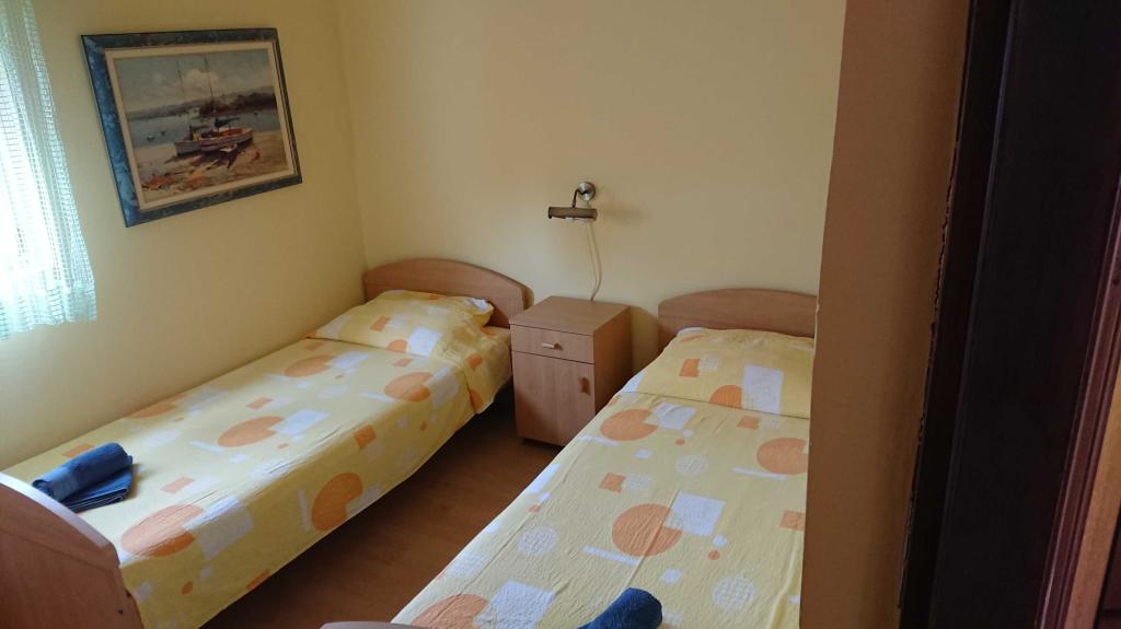 Apartments with sea views, situated by the sea. At the beginning of the island of Vir. With a large terrace facing west provides a view of the sunset. Each apartment has a parking place. Air conditioning and Wi-Fi included. Pebble beach and just 20 meters into the sea is 10 meters of loose rocks, and still has a sandy bottom perfect for kids. The beach is a bay on the south side of the island is protected from the north wind.