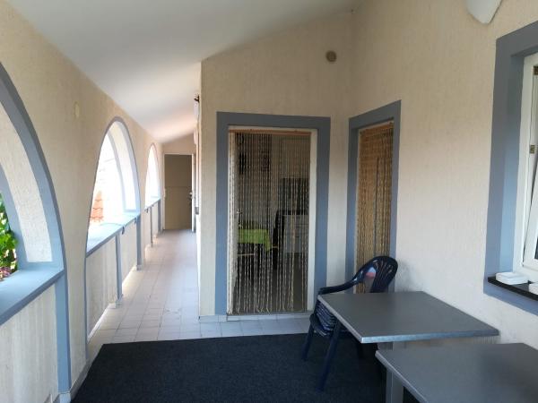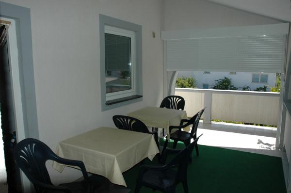 Modern, fully furnished two-bedroom apartments for 4 people with kitchen, dining area, shared terrace and barbecue in the yard, one parking space per apartment. The yard is fenced and locked at night. Distance to the beach 200 m, to the shop 50 m, and to the supermarket 500 m.