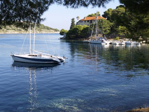 On the eastern side of the bay St. George (wave Vis) close to poluotokaČeška villas and beautiful gravel beaches Grandovac are apartments Eco. A modern building with attractive view of the bay. The offer provided by the accommodation needed is especially prominent: its own private parking, possible mooring boats, barbecue, bread oven, pool (sea water) only on the island. The landlord and his wife and little dog lives in the house. In winter processed vineyard, olive grove and catch fish.