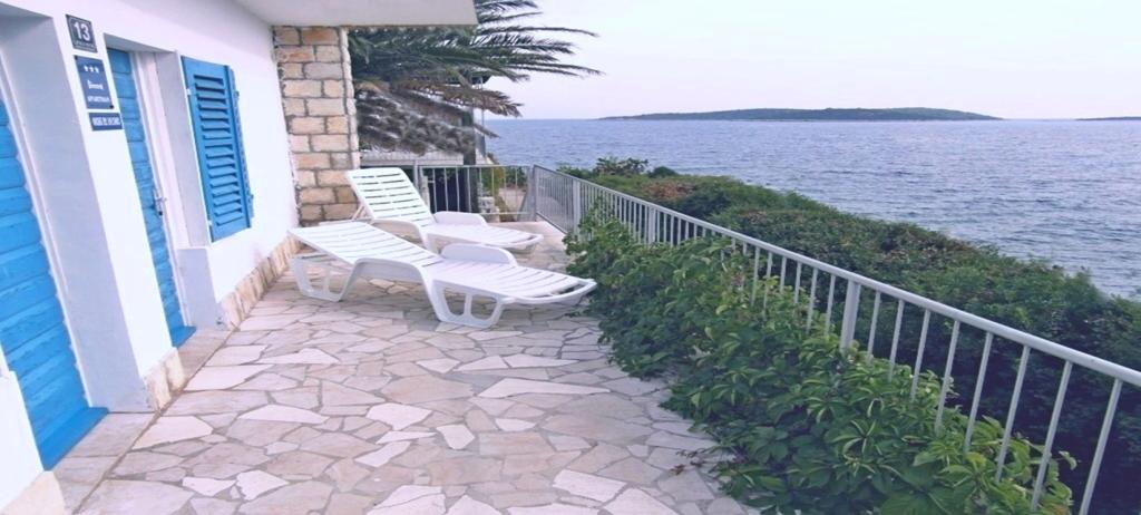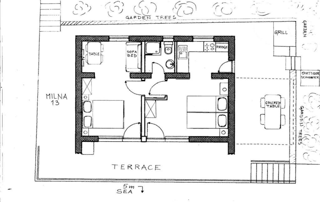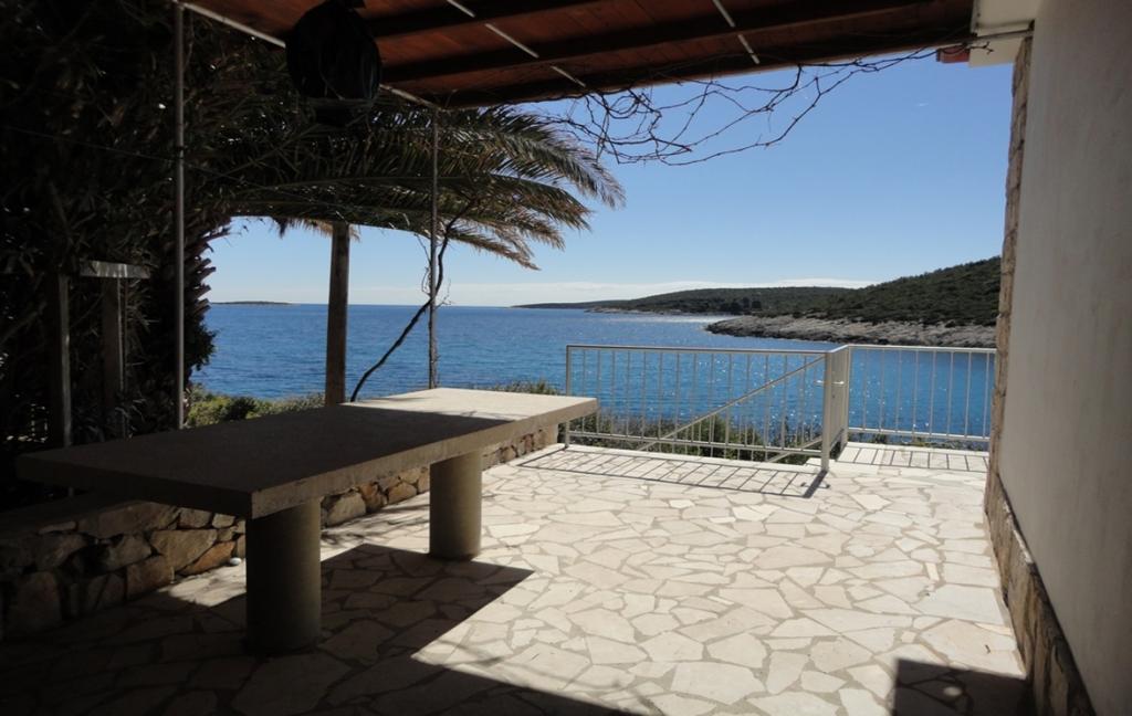 House for rent, 5m from the sea: exceptional location in Milna bay (island of Vis), ideal for a family. The house has internal space of 50m2, surrounded by a 60m2 terrace and a garden (150m2) with greenery that provides you with privacy and a pleasant vacation. Right next to the house, 5 meters from the terrace, you can swim, dive or jump into the sea. When you return from the sea, there is an outdoor shower. On the terrace there are: two deck chairs, a barbecue and a concrete table for sitting and dining with a view of the blue sea that you can enjoy all day long. Part of the terrace above the table and the barbecue is covered, providing shade/protection all day long. The house is air-conditioned, has Wi-Fi unlimited internet, LCD TV, stove with gas and electric kettles, big refrigerator (250 lit) with freezer, and everything else needed for cooking/baking and serving. Private parking is 250m from the house: along the coast, is 2-3m wide foot path(here are an trolley for stuff).