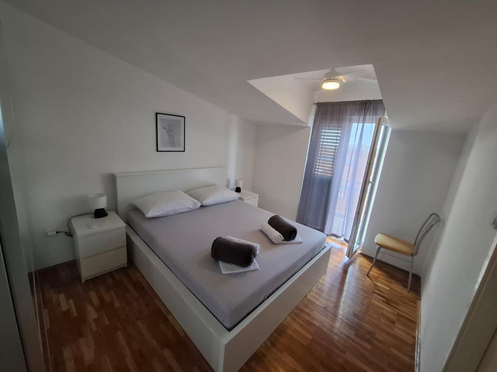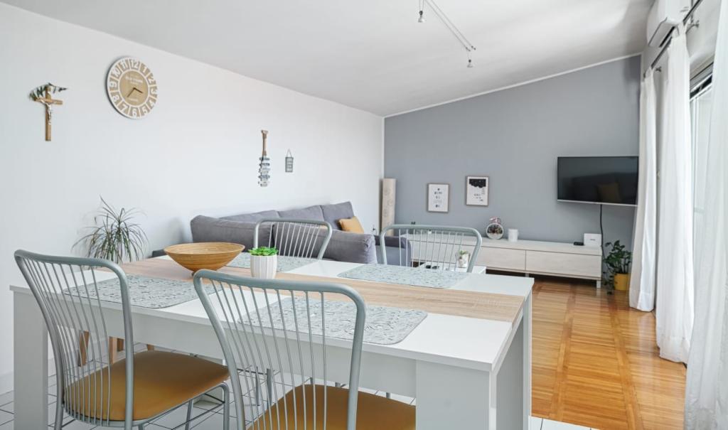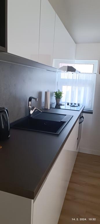 Apartment for four people, two bedrooms, large living room with kitchen, bathroom and large balcony. The apartment is 65 m2 in size. The facility is located in a quiet part of town. Ten minutes walk to the beach and the center.
