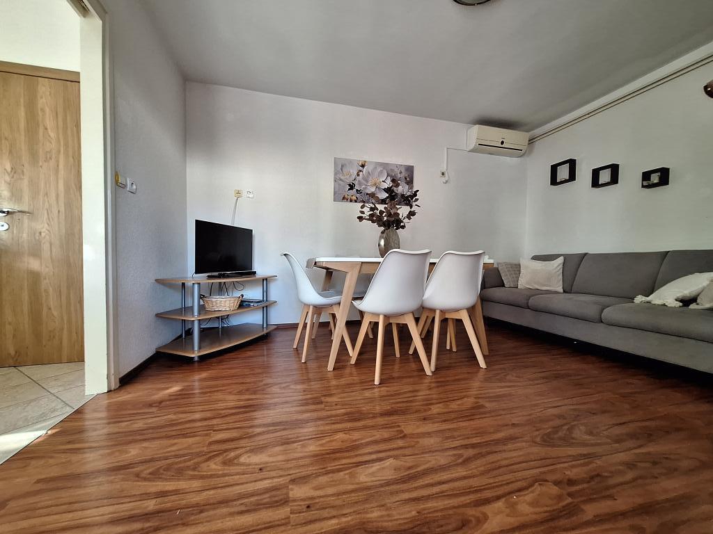 Apartments Bogdan are situated in a quiet part of the town in an area of 1100 m2. Facilities are located less than 10 minutes to the city center and 15 minutes walk to the sea. Large garden surrounded by lawns, flowers and greenery provides guests with a comfortable and peaceful holiday. All three apartments are located on the ground floor. Apartment A1 capacity 2 1 person, apartment A2 4 1 person and A-3 capacity 6 2 persons. Equipment: outdoor seating furniture, swings, parking, for more of automobiles, apartment A1 has its own garage, which is located next to the apartment, barbecue. There is also table tennis, playground for children. All apartments are air-conditioned and equipped with; satellite TV, wi-fi, washing machines, refrigerator with freezer, small appliances; coffee maker, kettle, toaster. and everything else that is necessary for the atmosphere of domesticity. The friendly hosts are available to guests (years of experience) for any further information needed or assistance of any kind.