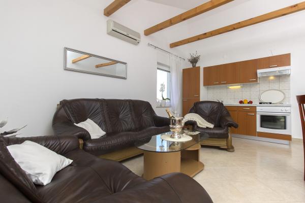 Superb apartments, very close to the beautiful beach, fully equipped kitchen, air conditioning, satellite TV, large terrace overlooking the sea. Excitable owners are available to help in every matter. Description of the object and photos most consistent with reality. I highly recommend this place. We will definitely be back there next year. Best Regards.