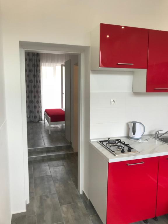 Renovated and nicely decorated house with yard and children's corner. There is a bakery in the house. Apartments have air conditioning, internet and parking. The beach is just a few steps away. Close to the Olympia and Imperijal hotels.