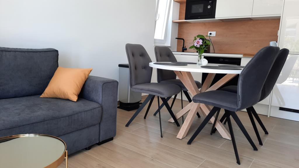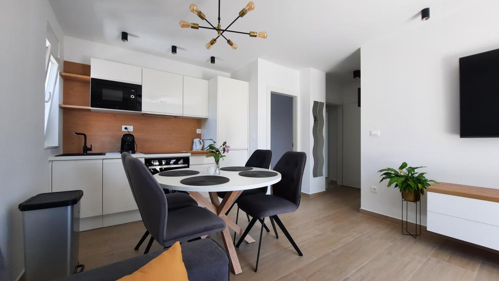 Fully equipped and modern apartments in Vodice located next to the sea with the ACI marina. The facility is located between the center and the beach (just 100 meters from the city center and 100 m from the eastern beach Hangar). All apartments have a view of the sea and the whole panorama.