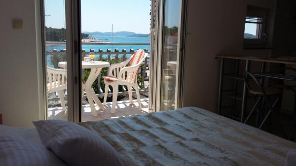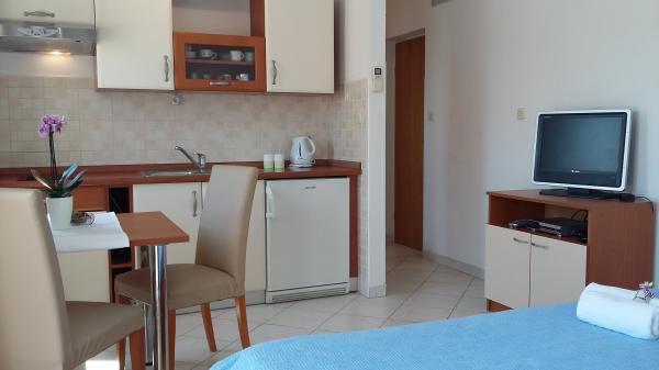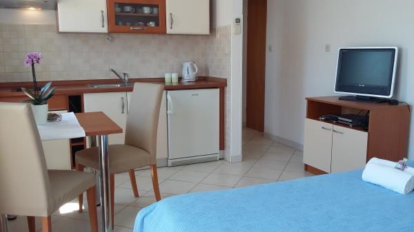 Speaking at the last minute find free 6 nights with family Kraljevic but we had a feeling that it will be very good! Rents are affordable, available, the studio was great, neat and clean, even better than the photos, just for two, with everything you need and more. The location is great for those without a car, and most importantly all the cost, mainly derived value vacation! Vodice is a lovely and very close to the other places of interest and excellent beaches. And of course, an excellent restaurant next to the apartments. Recommended!