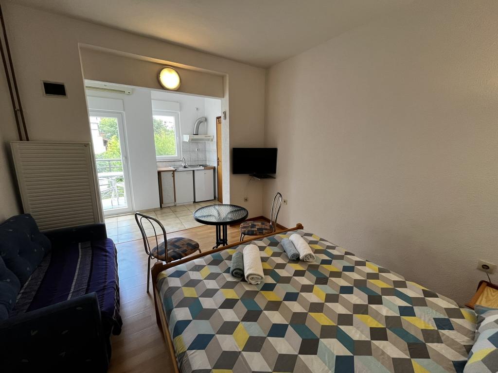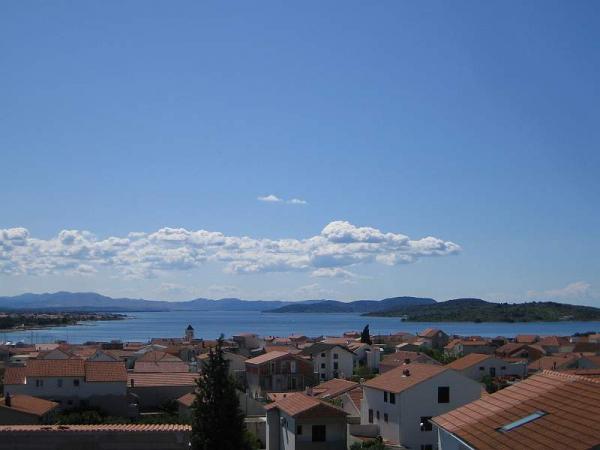 Apartments Kresović are located in Vodice, in a quiet street, just a 5-minute walk from the center of Vodice. Our apartments are located on the 2nd and 3rd floors of the house and offer a beautiful view of the sea. All are fully equipped and furnished, have one double bed and one sofa bed, a fully equipped kitchen and bathroom, and bed linen and towels are of course included in the price of the apartment. There is also air conditioning, satellite TV and WiFi, and a parking space that comes with each apartment and is located in our yard. We leave the decision to visit us and experience everything that Vodice can offer you!