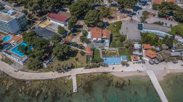 The object is located in a pine forest near hotel Punta , directly on the beach. The facility features 6 suites and 1 room, with total capacity of 25 persons. Check-in at 1 pm. And check-out is at 10 am. Facilities and equipment: bed linen, towels, final clining and tax areincludid in price. Additional services is shower in garden, free barbecue, free wifi Internet conection .Beaches are pebble, sand, concrete located directly in front the apartment in the shadeof pinetrees.The distance fromthe beach is 5 m, grocery stores is 100m, the closest restaurantis 10 m. All is nearly.