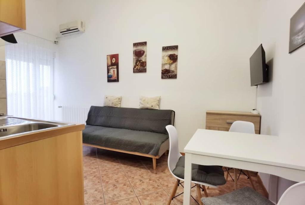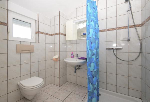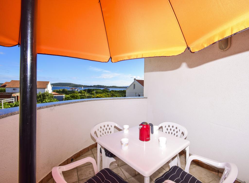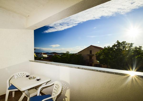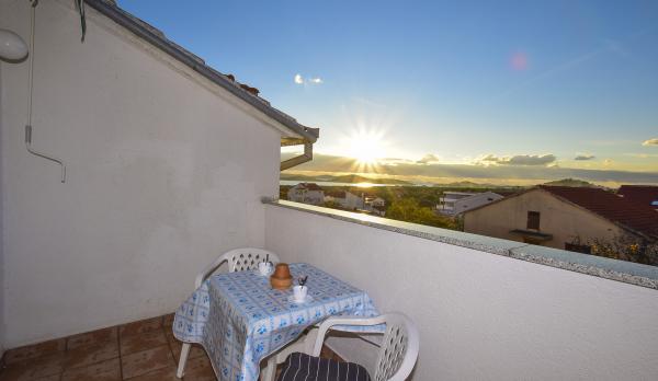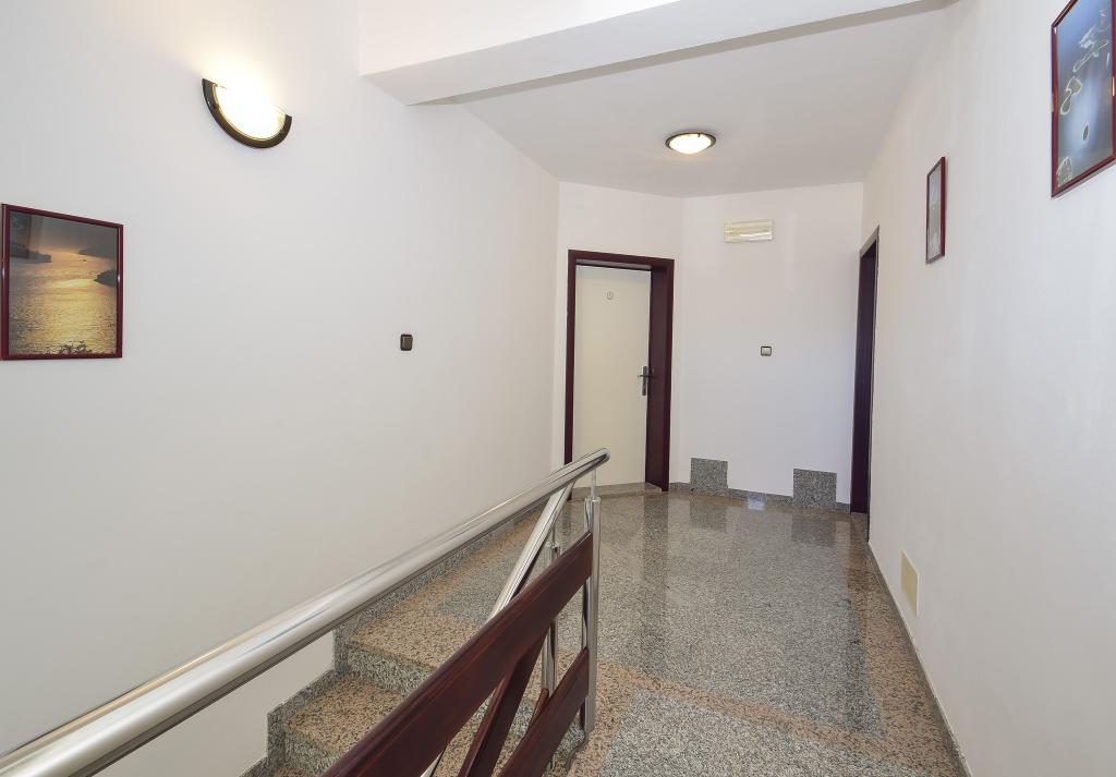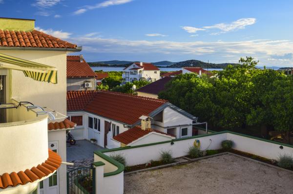 Villa Sanja is a modern building, located in one of the best locations in Vodice, 350 meters from the beach, with 7 apartments with a balcony or terrace. All seven apartments have a beautiful sea view. An extra bed can be placed in all apartments. The apartments are modernly furnished and extremely spacious. 5 Apartment for two people is 38 m² in size - it consists of a bedroom, living room with kitchen with sofa bed and balcony. 2 Apartment for 2 people 50 m² with living room, kitchen, bedroom, bathroom large balcony or terrace. One Apartment complete floor for 8 - 10 people: • four large double bedrooms, two of which with a third bed • four bathrooms with toilet, large kitchen, common room. • Parking on the property or in the house • about 15 minutes walk to the center of Vodice • about 5 minutes walk to the beach This family house is located about 350 meters from the beach. Parking in the facility or at home.