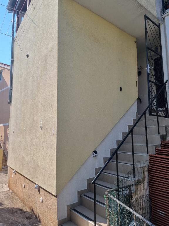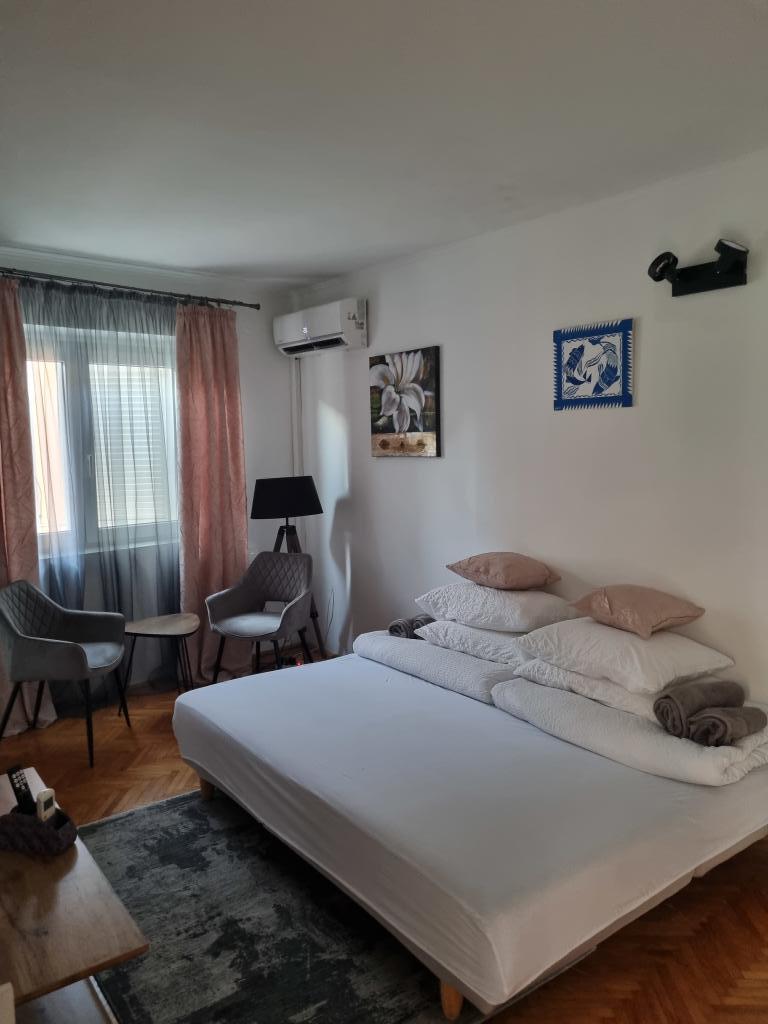 The house with apartments is located in the center of Vodice, in a small side street. Guests of both apartments have at their disposal a covered terrace with a mural and a space for rest and socializing, as well as a roof terrace with a grill, deckchairs and a view of the sea and the city.