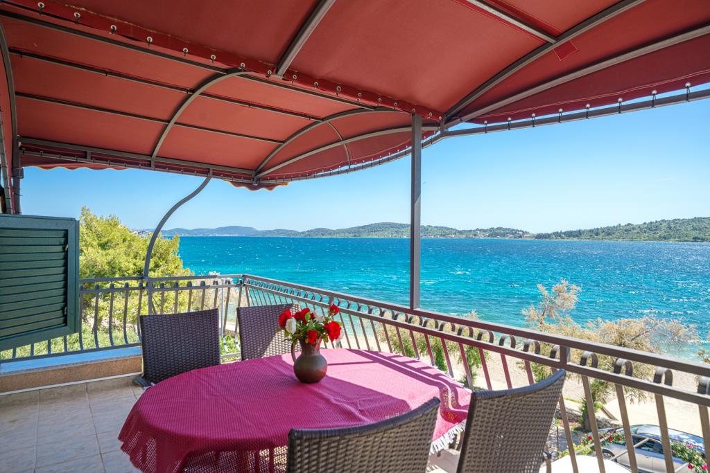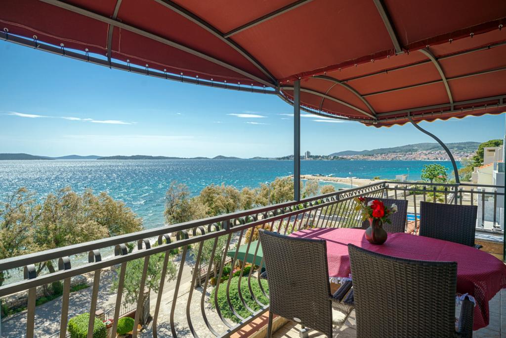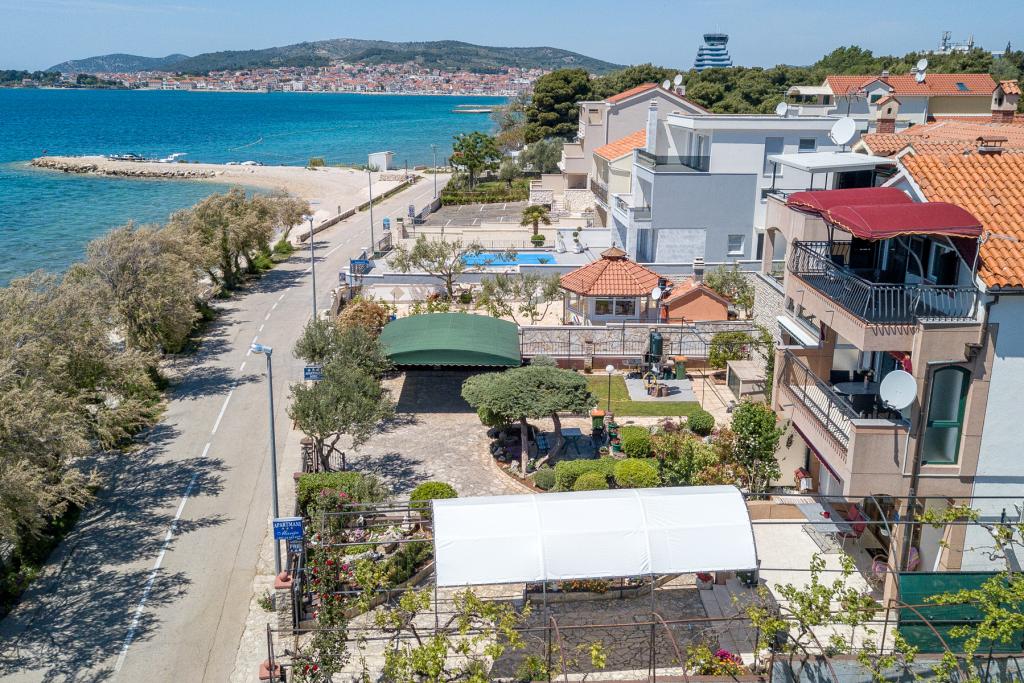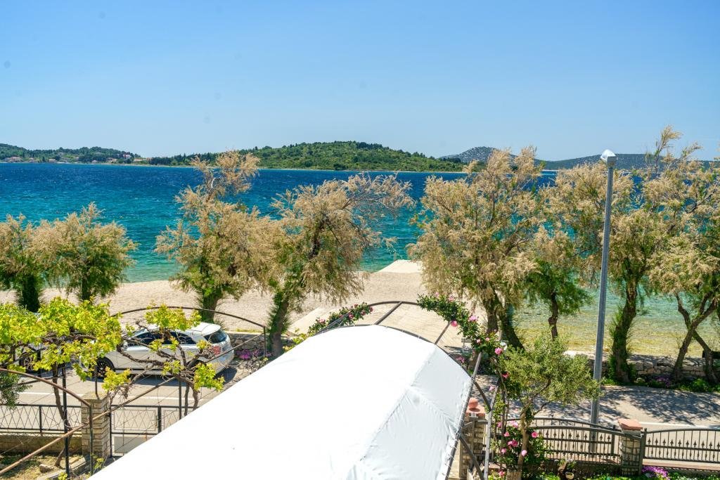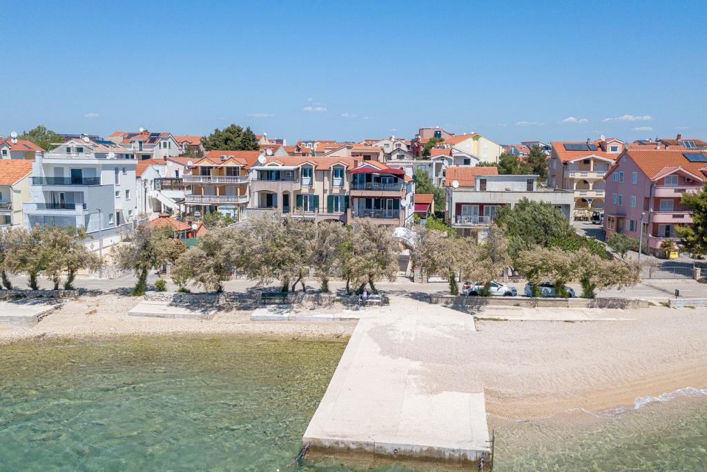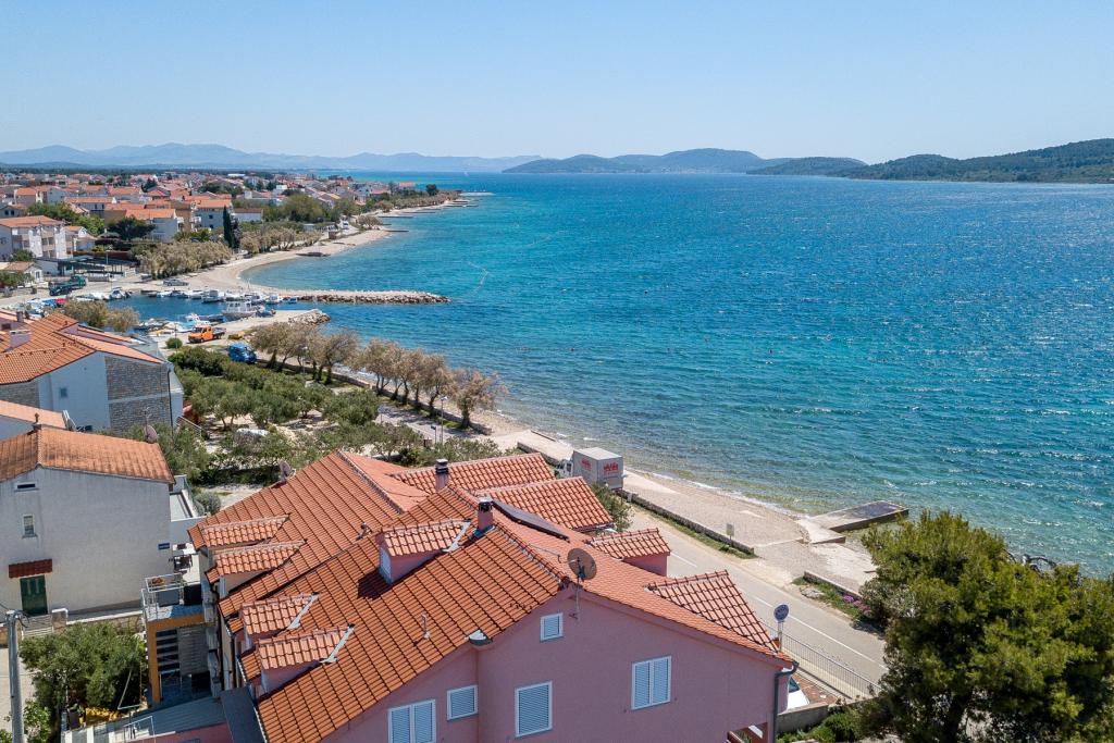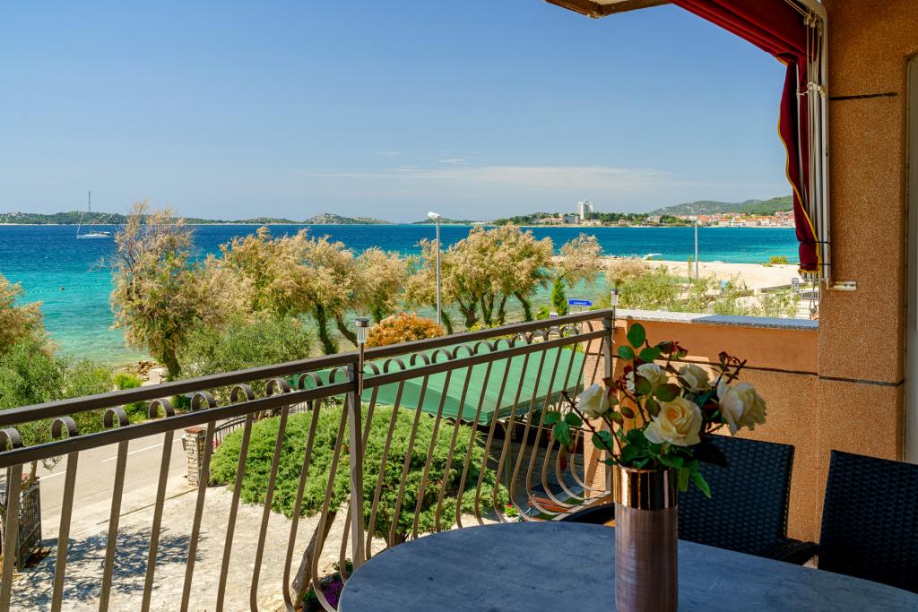 Vodice Apartments Marija Vulić only 6 meters from the sea, first row to the sea. Renting an apartment in Vodice can be for several people. A large beach right in front of the apartment, everything is tidy, the sea is clean. Extremely attractive location with countless contents for all generations, whether young or old. Close to shops, center, catering program, discotheque, outdoor party, beach cocktail, music, fishing. Secure parking, air conditioning, Wi-Fi, satellite television, kitchen, bathroom, bedroom, living room, a really beautiful terrace and a view of the indented Adriatic coast. In front of the house there are two moorings for the boat. Choose one of the 3 apartments on offer today, in order to ensure you the best appointment. You will feel at home with us. We respect your privacy and are always at your service if you need any advice.