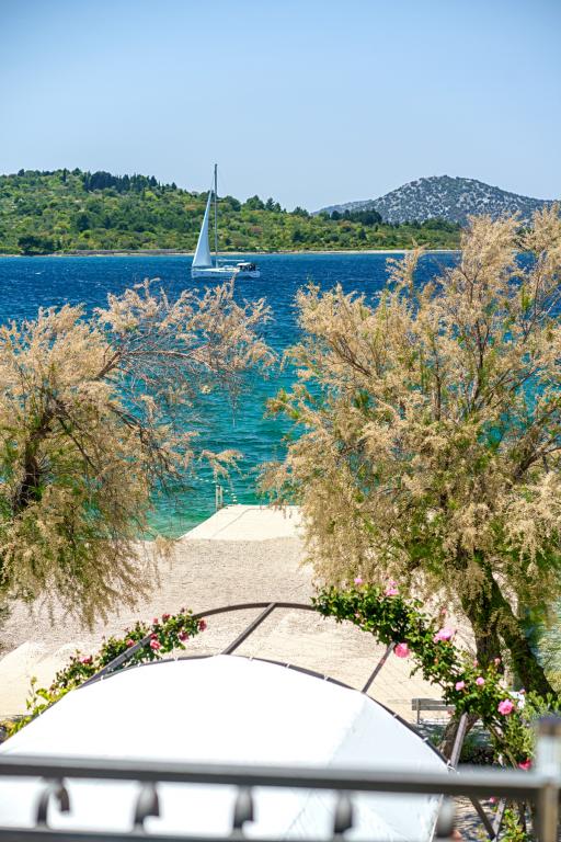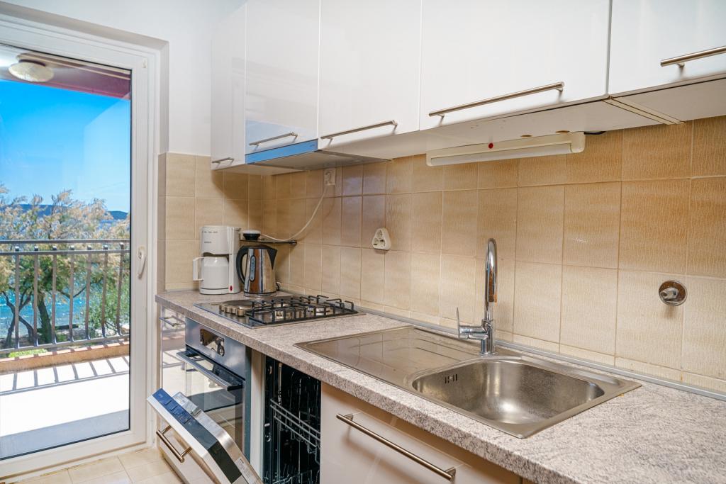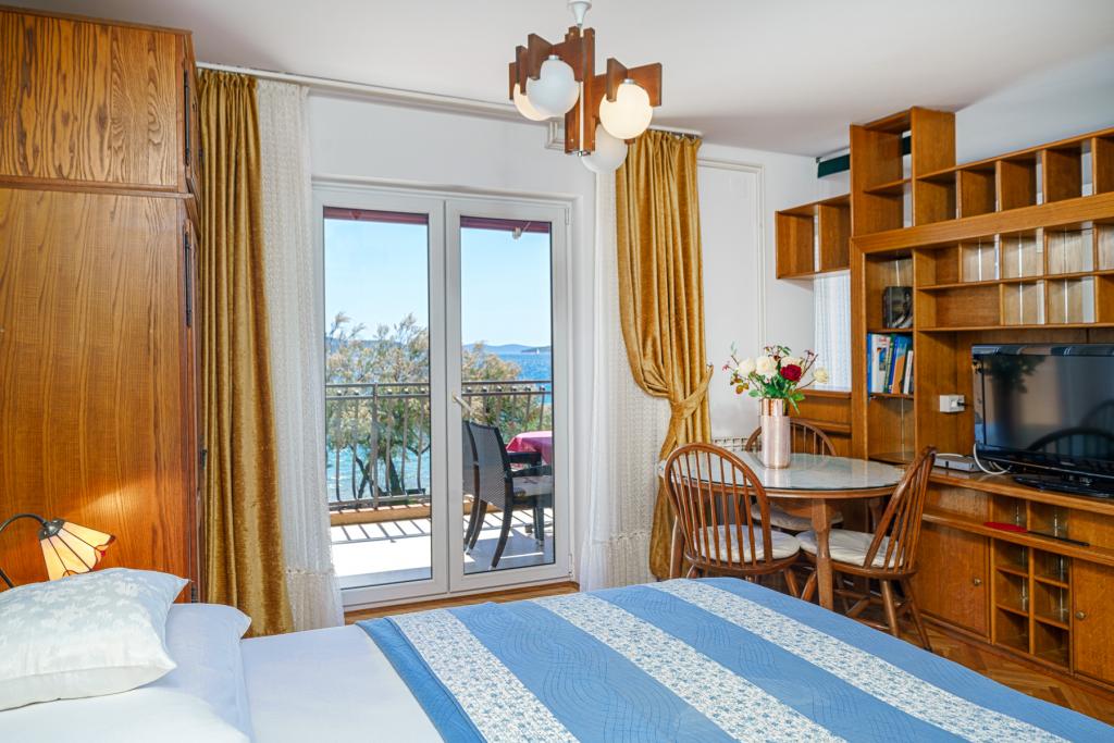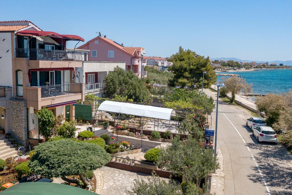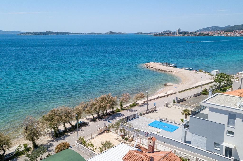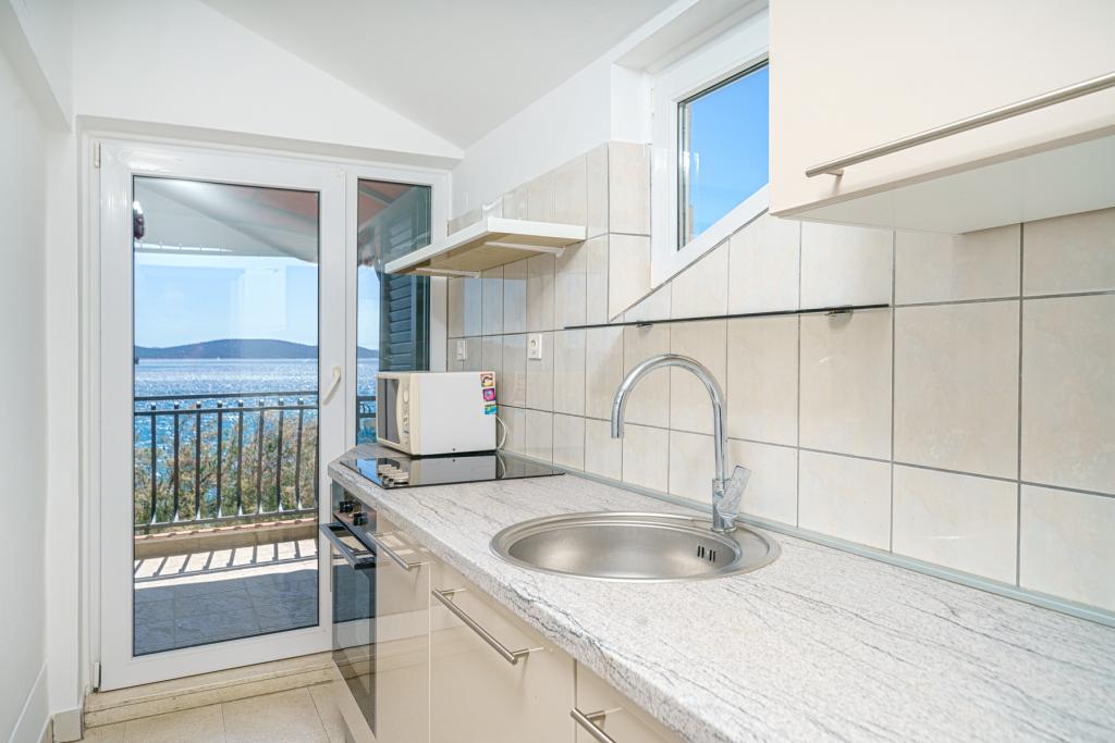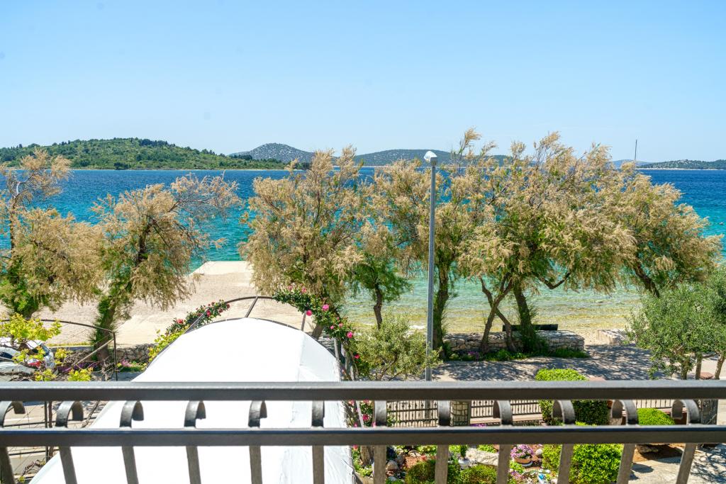 Vodice Apartments Marija Vulić only 6 meters from the sea, first row to the sea. Renting an apartment in Vodice can be for several people. A large beach right in front of the apartment, everything is tidy, the sea is clean. Extremely attractive location with countless contents for all generations, whether young or old. Close to shops, center, catering program, discotheque, outdoor party, beach cocktail, music, fishing. Secure parking, air conditioning, Wi-Fi, satellite television, kitchen, bathroom, bedroom, living room, a really beautiful terrace and a view of the indented Adriatic coast. In front of the house there are two moorings for the boat. Choose one of the 3 apartments on offer today, in order to ensure you the best appointment. You will feel at home with us. We respect your privacy and are always at your service if you need any advice.