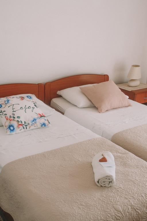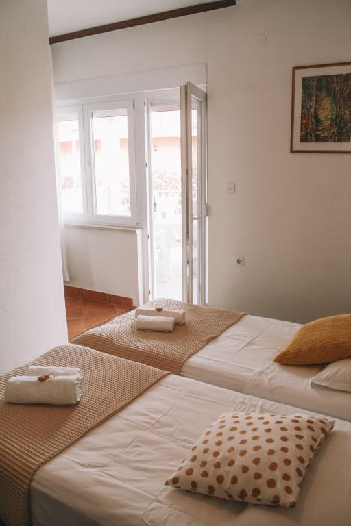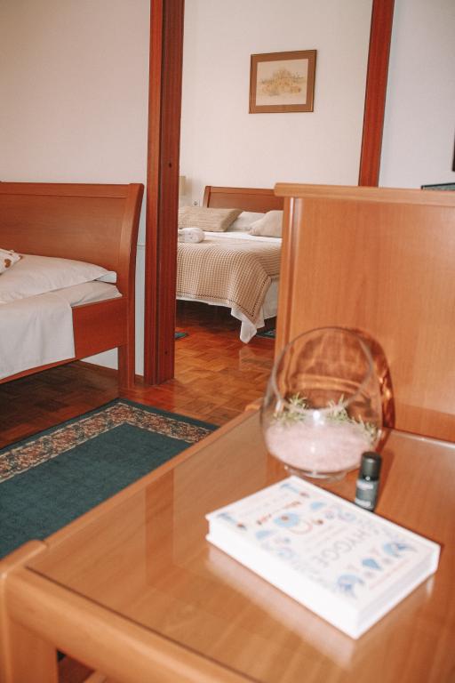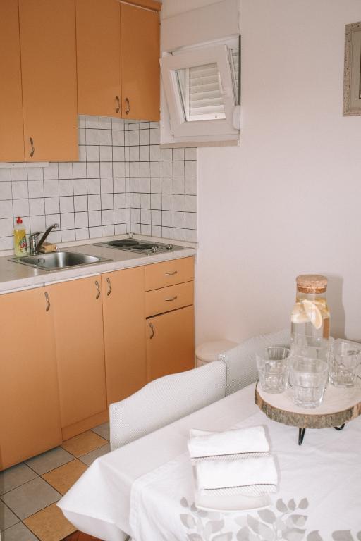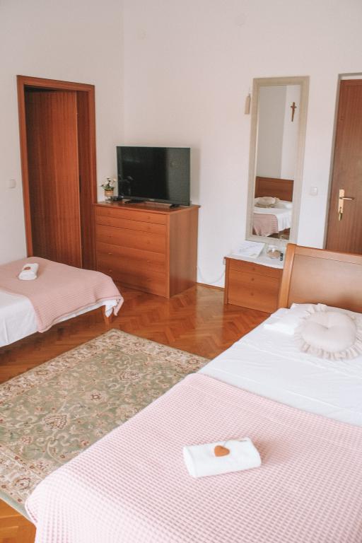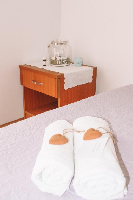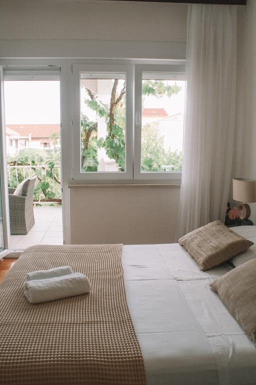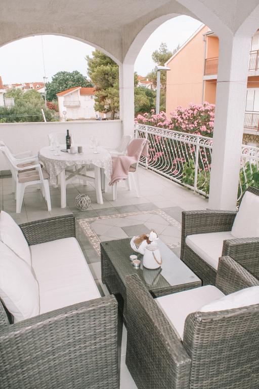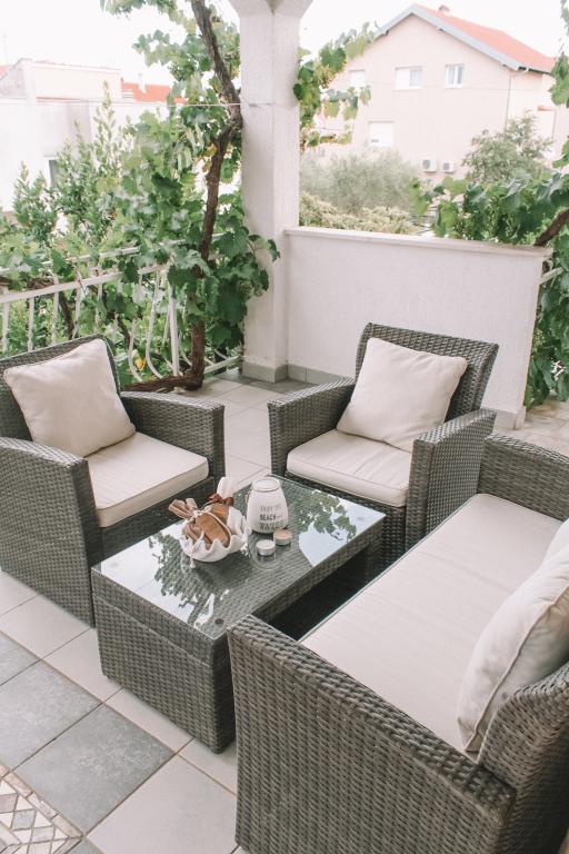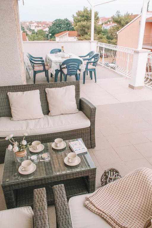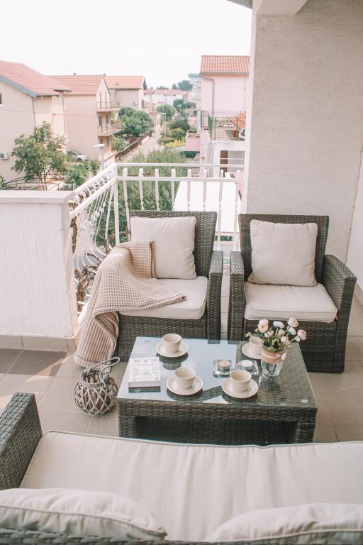 The apartments are located in a quiet part of Vodice. The building has a large terrace of 25 m2, a garage, parking spaces, a large brick grill. The apartments are spacious, equipped (TV-SAT, air conditioning, WIFI internet). In the yard, we have created a fragrant garden with Mediterranean herbs for you, and in the apartments themselves you can relax with the refreshing and calming scents of organic essential oils from Croatian plants. Our mission is to make each of our guests feel relaxed, comfortable and happy during their stay. A welcome drink and a traditional cake await every guest!