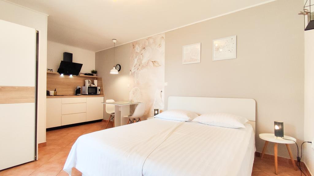 We booked A4 Deluxe. The apartment is very spacious and has everything you need to feel comfortable. The owner Marija is super nice. Pampered us with juice, wine and freshly plowed figs. I can absolutely recommend this accommodation.