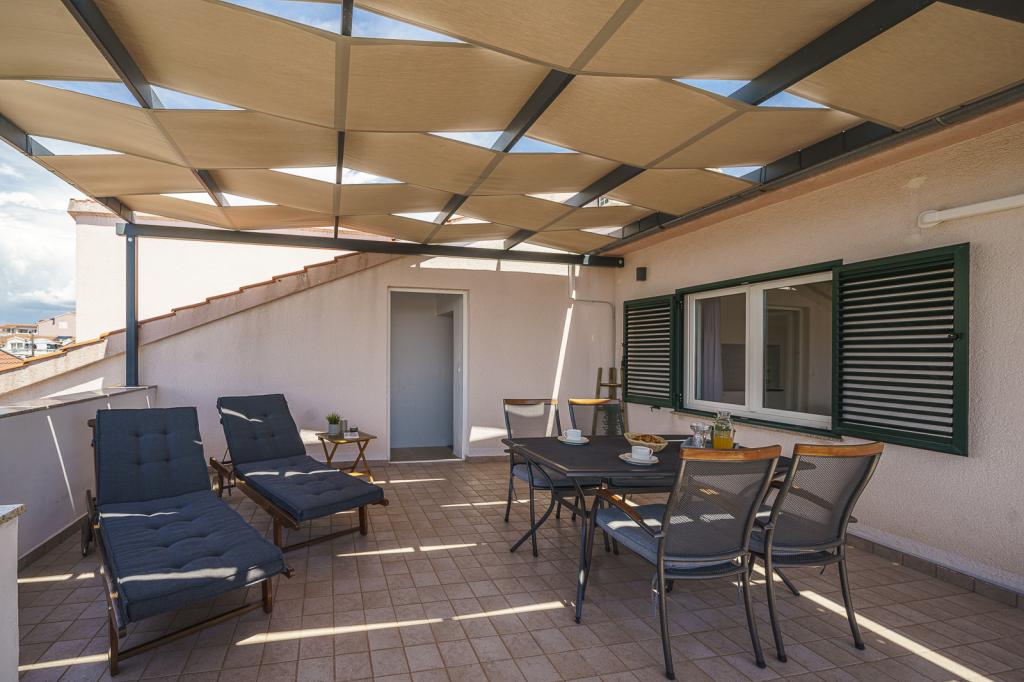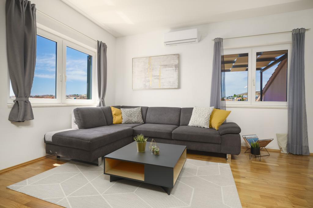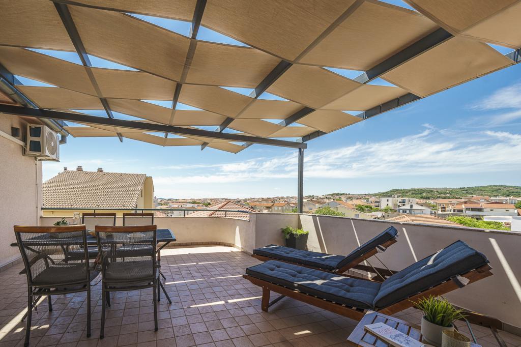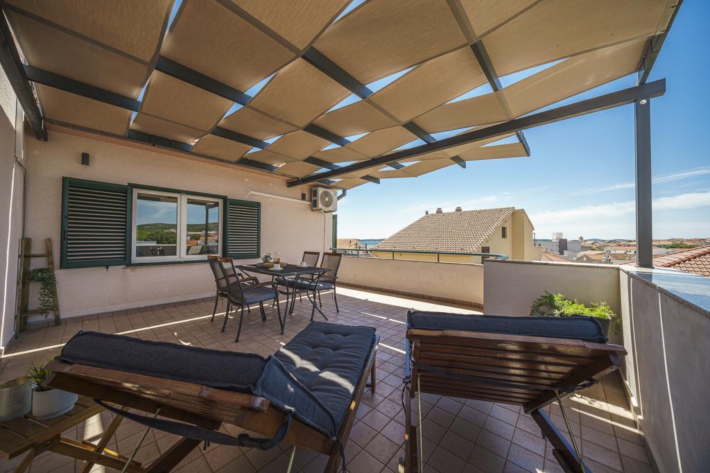 Welcome to Family Petrov Apartments! We offer comfortable accommodation in 5 modernly equipped apartments, perfect for smaller groups or larger families who want to enjoy a relaxing holiday. They are located in two family houses with their own entrances, arranged on the ground floor and first floor. Each apartment has its own separate entrance and private covered terrace. Our location is ideal - we are located in a quiet area, away from noise and traffic, yet only a few minutes walk from the center of Vodice and the pebble beach of Mala Vruje. In the immediate vicinity there are supermarkets, cafes, a bakery, a pharmacy, so all your necessary amenities are within easy reach. We invite you to spend your holiday in a peaceful environment, not far from the beach and the city center!