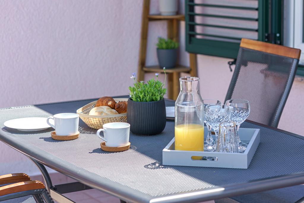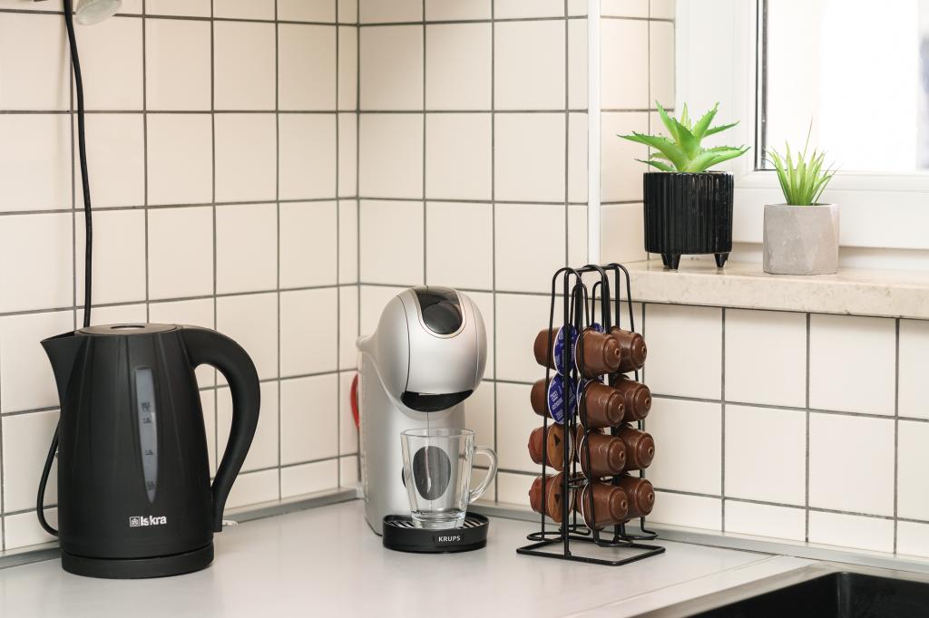 In addition to the basic amenities, such as spices, oil, vinegar and detergent, the apartment also includes additional equipment for your comfort. The coffee machine comes with capsules, and for cleaning clothes and dishes, tablets and capsules are provided, which you can find with the appropriate appliances. A clothes iron and ironing board are also available, which allows for easy ironing whenever needed. We are also here to help you with any questions or advice, whether it's recommendations for excursions, boat rentals, bicycles or any other service. Feel free to contact us for anything that can improve your stay!