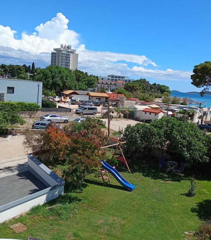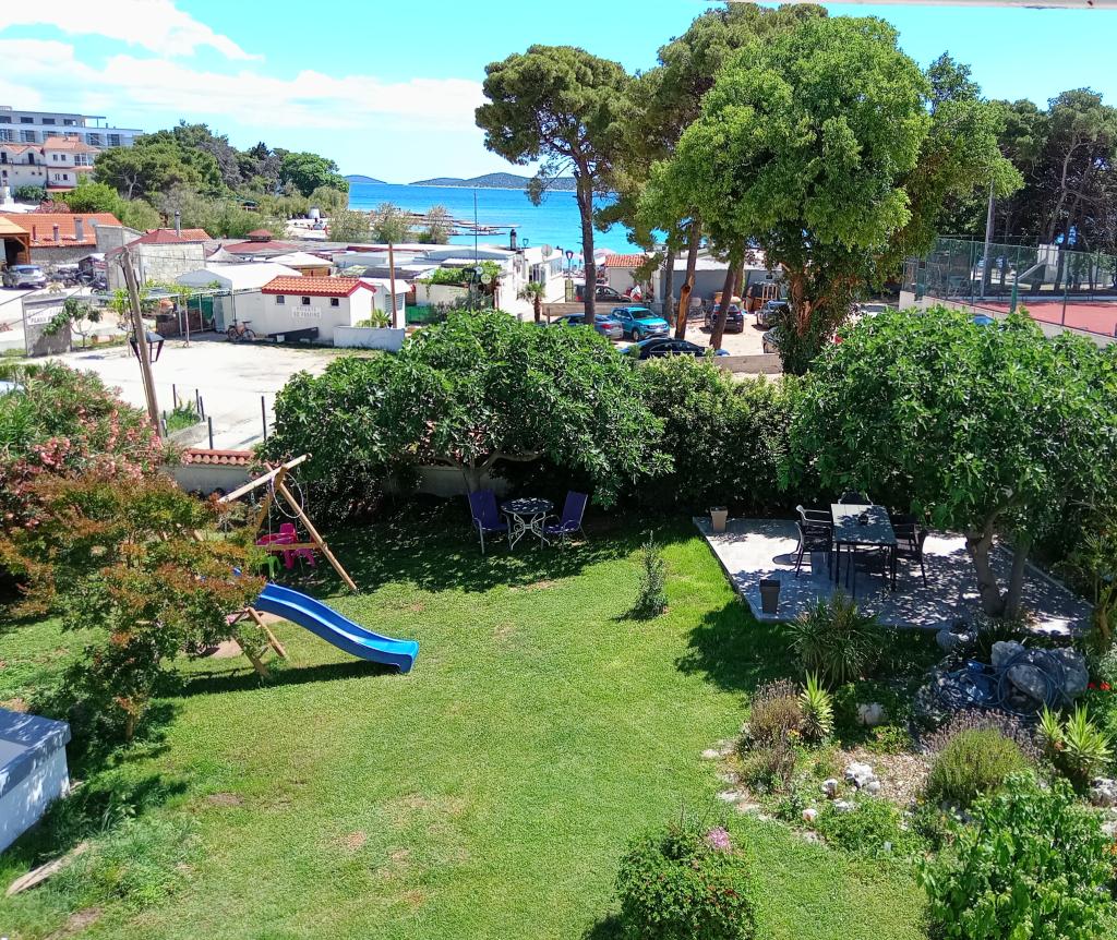Apartments Plava Plaža are located in a quiet part of Vodice, on the beach, first row to the sea. The center and all the necessary amenities are only 5 minutes on foot. All apartments have a sea view, a pine forest and a beautifully landscaped garden. The apartments are nicely decorated with all the necessary amenities. Possibility of use, garden, barbecue and children's playground. secured parking in the yard of the facility.