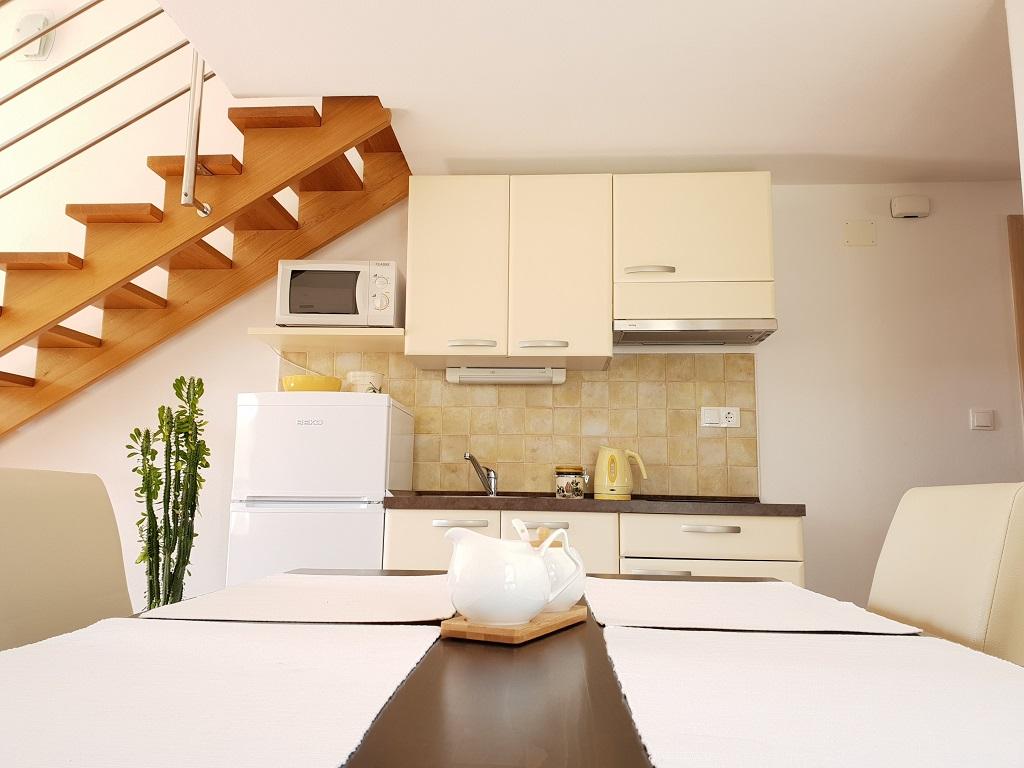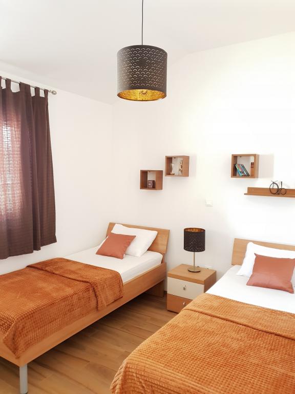 All match the description. Owners friendly and nice and helpful. So welcome us home products. Beautiful summer kitchen equipped with everything you need, where you can spend pleasant evenings at the grill. The apartment has a washing machine, which makes it very easy life. The house is located in a blind street, so it is quiet yet close to the beach and to the store. To all who wish to relax recommend these apartments. We were two families so we had everything at his disposal. Lovely. Certainly there come again. Vodice is a beautiful place, but a lot of tourists. Greetings family Kordek