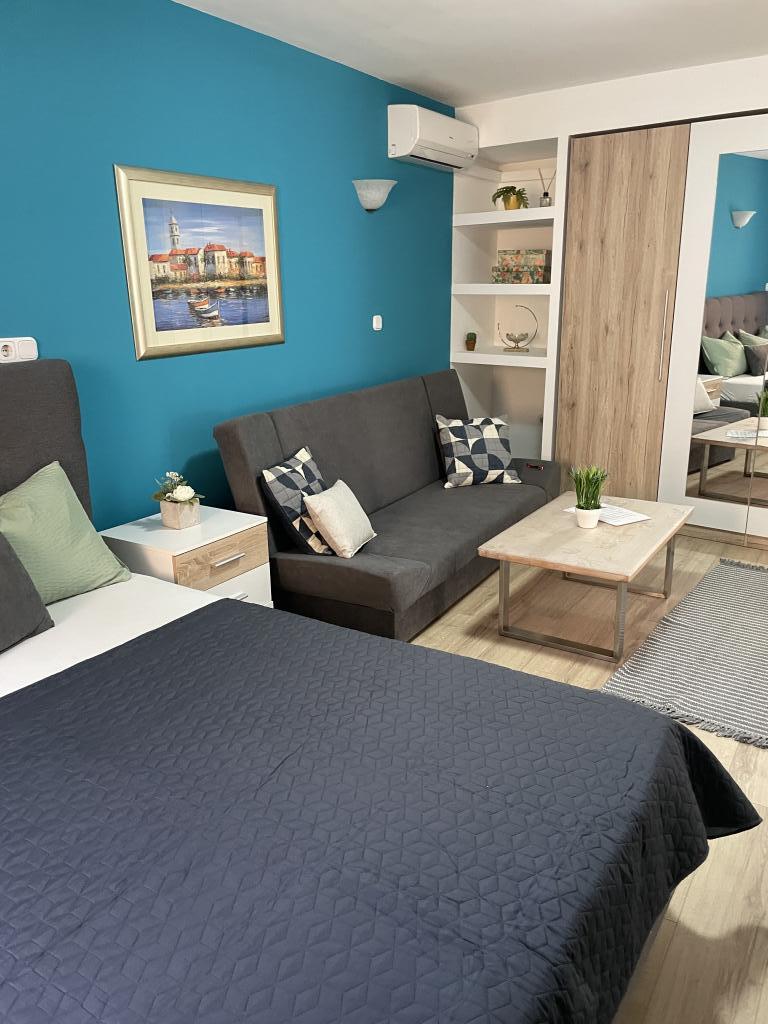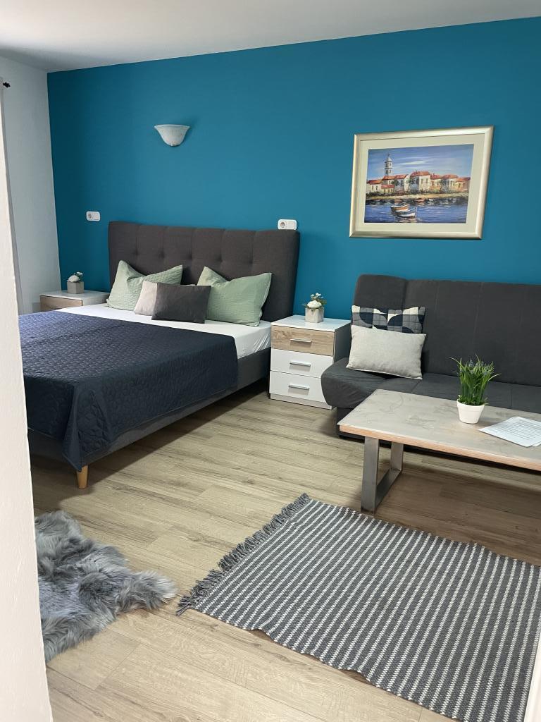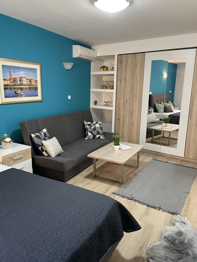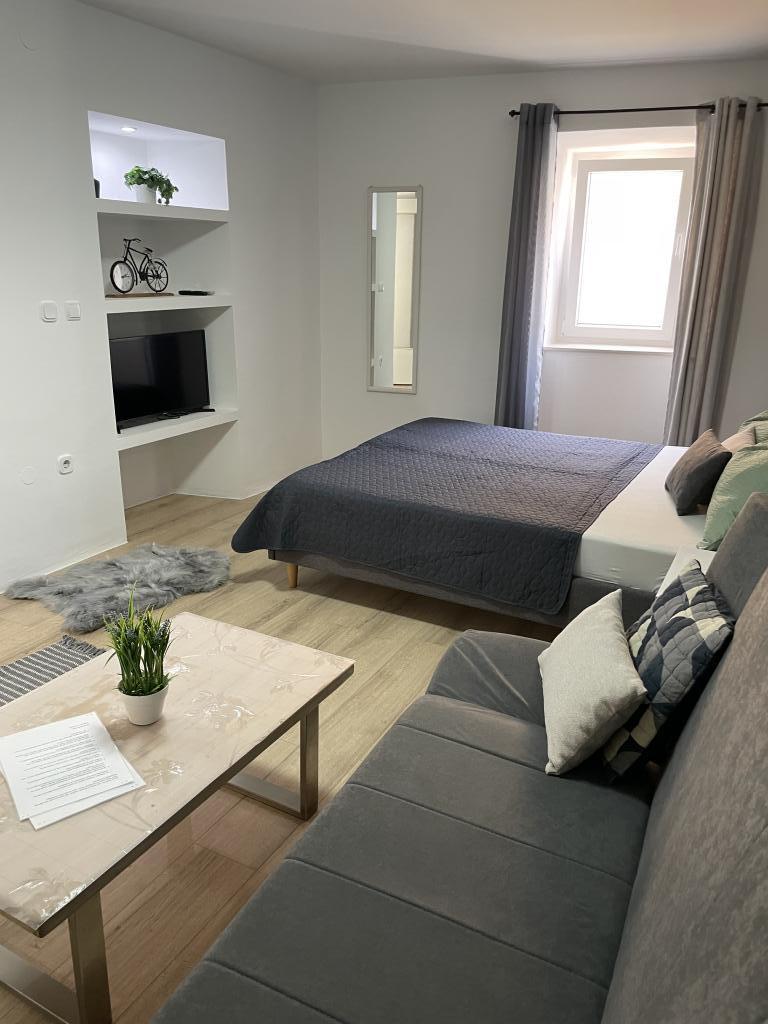 Fully and modernly equipped apartments in the center of Vodice, located some 150 meters from the sea. The facility is located a 1-minute walk to the center and a 5-minute walk to the beach... We offer an apartment with a sea view for 4+1 persons with two double beds in 2 rooms with one extra bed for the 5th person, and a balcony with a beautiful view of the sea. 2 Apartments 2+1 persons with a double bed and an extra bed, and one of these two apartments has a balcony. .Special offer for 6 and 9 months: pay for 5 nights and get one night free!! In addition, you have free parking. Welcome to beautiful Vodice