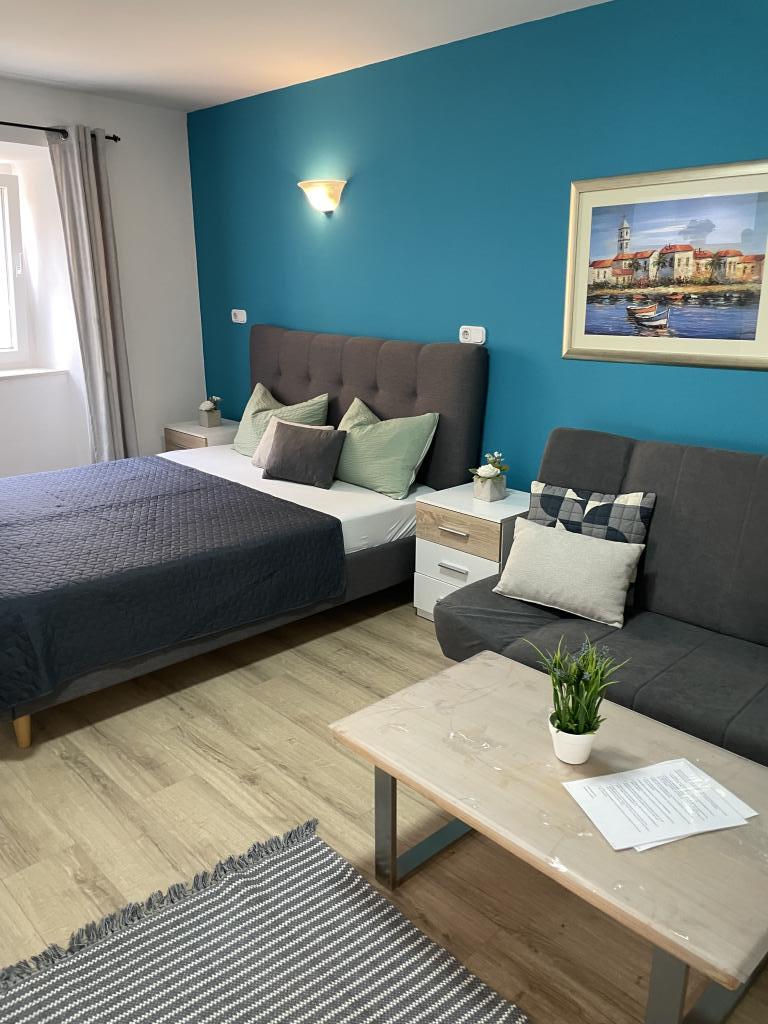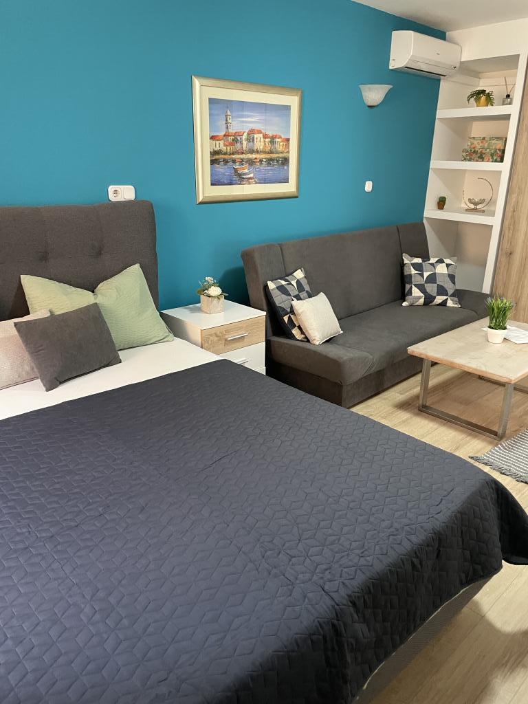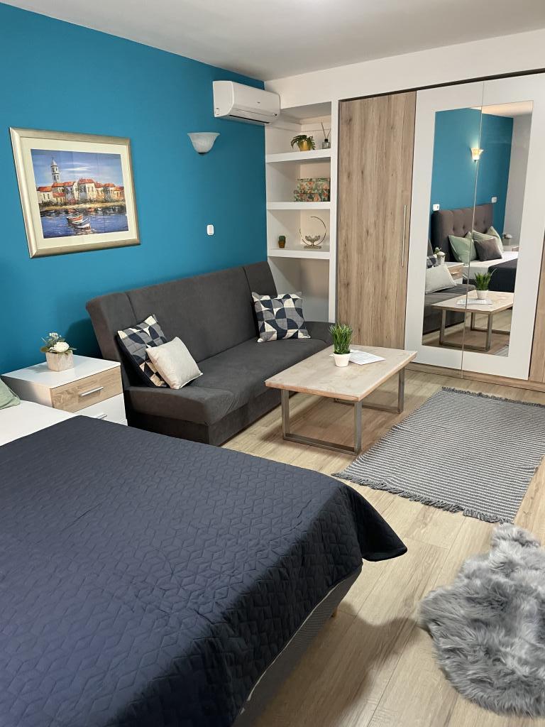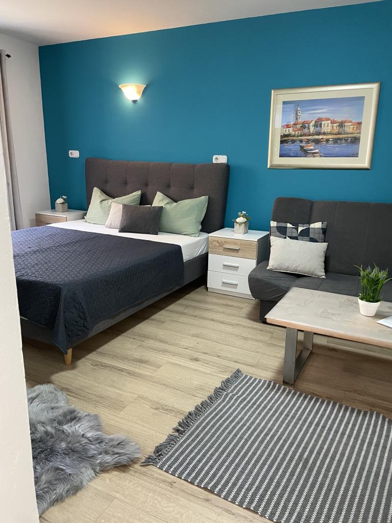 Fully and modernly equipped apartments in the center of Vodice, located some 150 meters from the sea. The facility is located a 1-minute walk to the center and a 5-minute walk to the beach... We offer an apartment with a sea view for 4+1 persons with two double beds in 2 rooms with one extra bed for the 5th person, and a balcony with a beautiful view of the sea. 2 Apartments 2+1 persons with a double bed and an extra bed, and one of these two apartments has a balcony. .Special offer for 6 and 9 months: pay for 5 nights and get one night free!! In addition, you have free parking. Welcome to beautiful Vodice