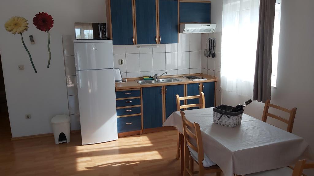 Fully and beautifully equipped apartments located in a quiet area of Vodice in a family house 50 m from the beach, first row to the sea. There are two apartments on the first floor. The area of each apartment is about 45 m2, they consist of one bedroom, bathroom, kitchen with dining room, and a terrace with a view of the sea. Capacity max 4 people per apartment. The apartments are equipped with air conditioning, TV/SAT, internet (Wi-Fi), microwave oven, the possibility of using a baby cot, iron, grill and parking is provided. The facility is located a minute's walk from the beach, a 10-minute walk from the center. Book your accommodation on time and spend a pleasant vacation in our home.
