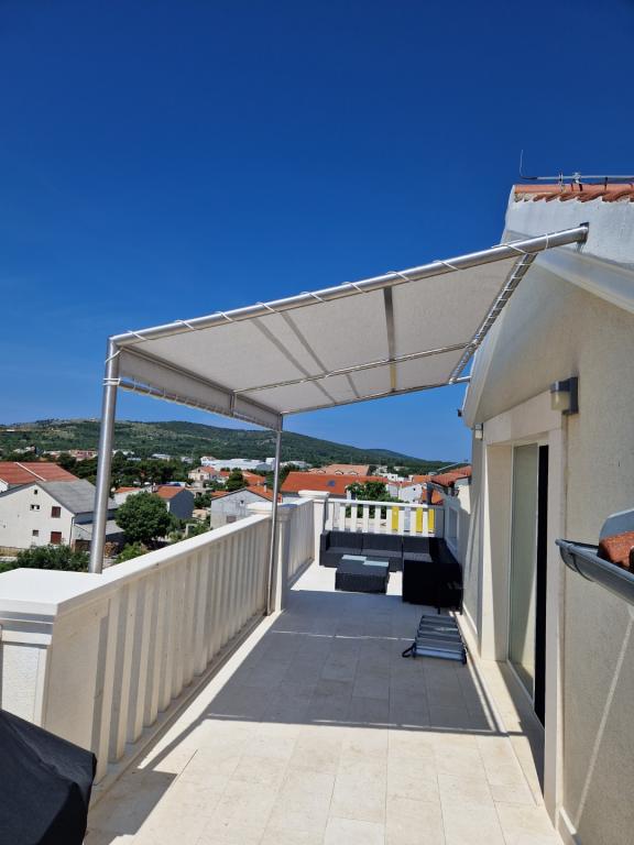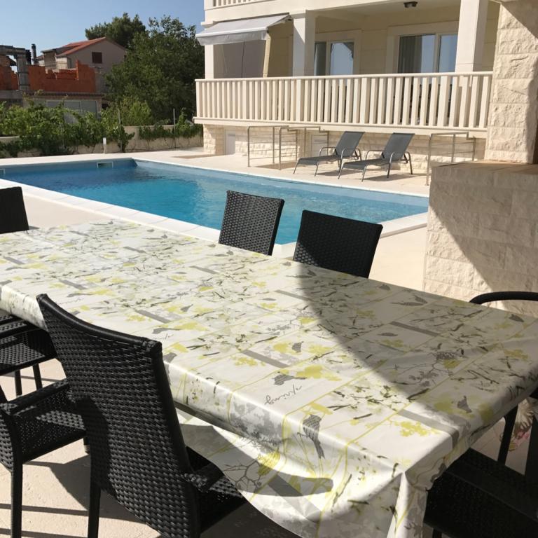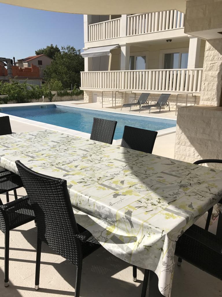 We have stayed in this Penthouse apartment several times during summer. It has more than enough space for our family, high standard and equipped with everyting you need. Fantastic view from the rooftop terrace as well! Outside, you have a super pool area with an outdoor kitchen, sun chairs, toilet and shower. All you need to relax, cool down and enjoy summertime. Highly recommended!