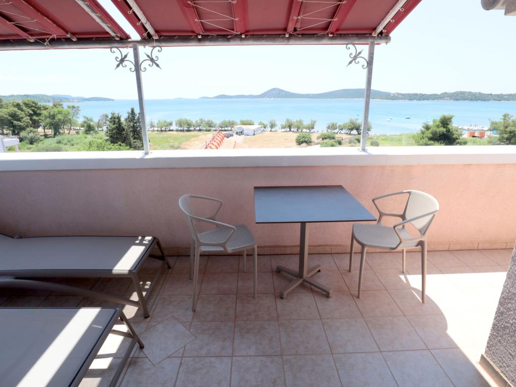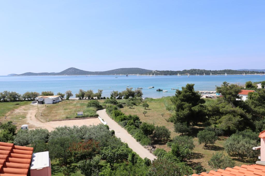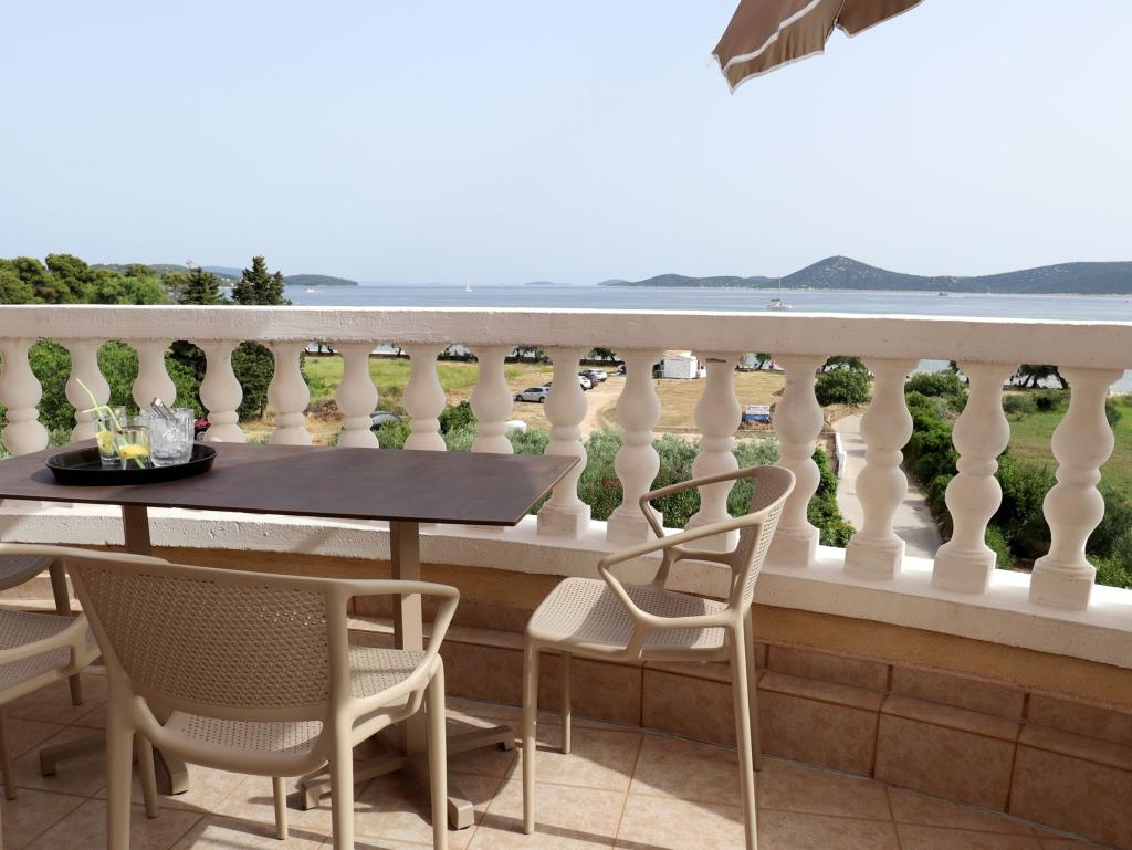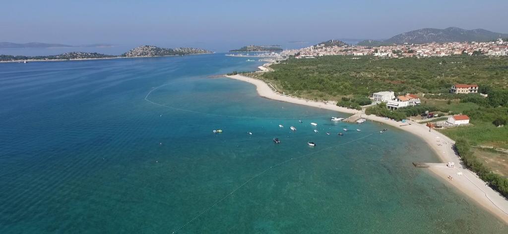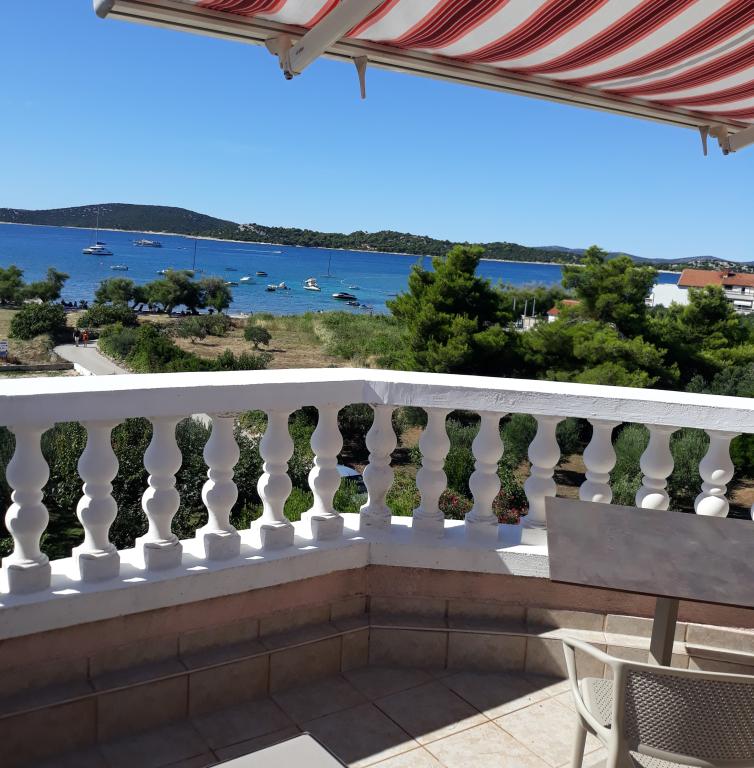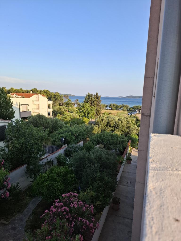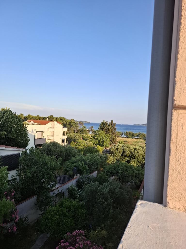 “Villa Lovorka” offers accommodation first row to the sea, with a beautiful, open view of the islands, the beach and the surrounding area. On the edge of the town of Vodice, in a quiet area, for a relaxing holiday. Our apartments have the “Like HOME” label, a club quality family accommodation. Our comfortable apartments have 1 or 2 bedrooms, each with a standard equipped kitchen, living room with dining area, hall, shower/toilet, and large balconies, most with a sea view. We highlight a large fenced parking lot for cars and boat trailers. If you want recreation, entertainment or gourmet pleasures, the famous Blue Beach is nearby, Vićevica beach, in front of the house Bristak beach, as well as the new promenade connecting Vodice and Tribunj. We live on the ground floor all year round and are happy to be at our guests' disposal. Basic features: - first row to the sea - spacious balconies with a beautiful sea view - central heating and air conditioning for a comfortable stay - SAT TV, Wi-Fi - we create additional content according to the guest's interests