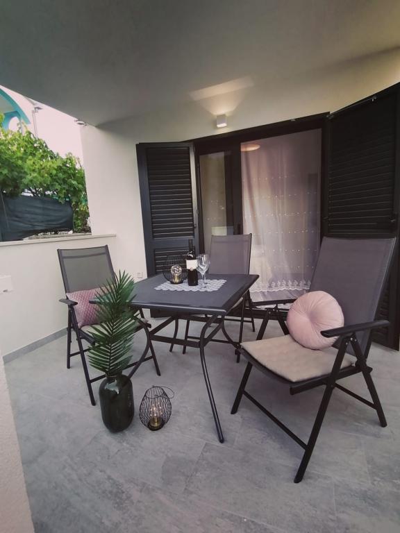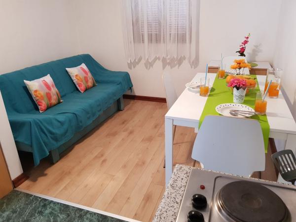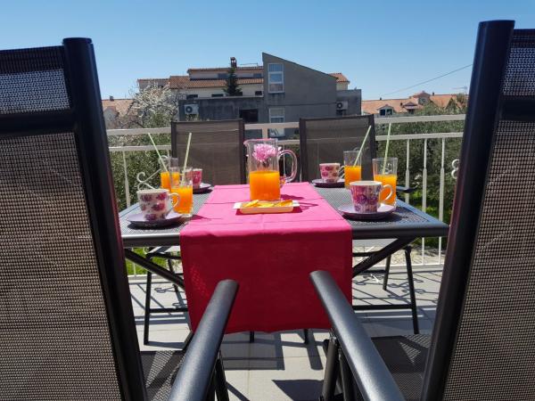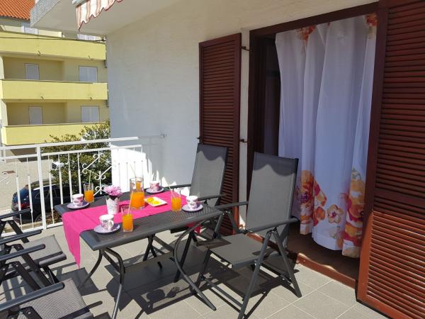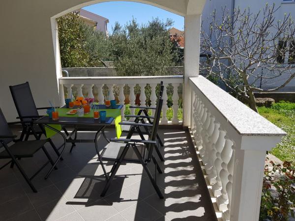 Apartments Zoric are located in the Lovetovo area, away from the center of Vodice, a 15-minute walk along the sea. Apartments are located in a quiet green area of 900 m2, only 100 meters away from the pebble beach. All apartments are air-conditioned and have a terrace or balcony. For guests there is a parking with 10 parking spaces, a grill and a trampoline in the yard of the building and dinghy. We offer you a pleasant stay in a peaceful environment.