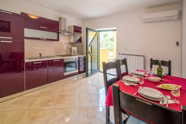 The family house is located in a quiet part of Vrbnik. In addition to the host of the house is situated 5 apartments, a total of 16 people. Apartments Sun are located 2 minutes from the beach. From the terrace is a wonderful view of the Velebit channel and the old Vrbnik The house has a large garden. Our tourists drink free wine (Zlahtina). Ideal stay before and after the season. You will enjoy the peace, sun, sea and žlahtina. Nearby Vrbnik there are a lot of bicycle paths and walking trails (with vineyards in the wild). We have a diving center and a diving school. The seabed in the area of Vrbnik is wonderful.