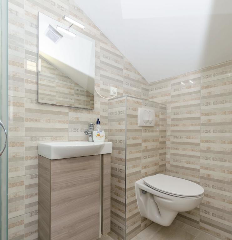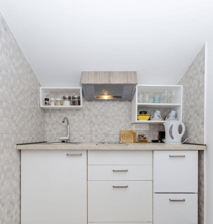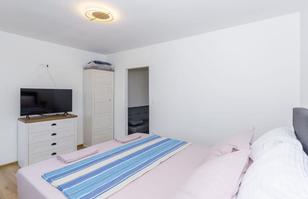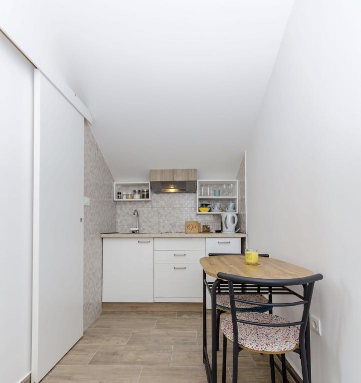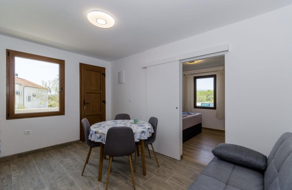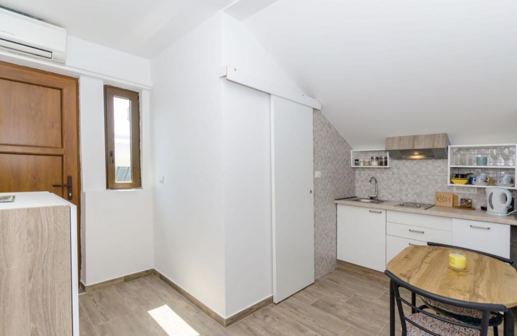 Apartment A1 A spacious and comfortable apartment suitable for 2–3 guests. It includes a bedroom, a living area with an extra bed, a fully equipped kitchen and a bathroom. The apartment also features a large private terrace, providing plenty of space to relax and enjoy warm Mediterranean evenings. Apartment A2 A modern and functional studio apartment for 2 guests. It includes a comfortable double bed, a kitchen with a dining area and a bathroom. The apartment also has a smaller private terrace, perfect for enjoying time outdoors. Both apartments are fully equipped to ensure a comfortable stay. Guests have access to air conditioning, TV, free WiFi, dishwasher, microwave, electric kettle and a fully equipped kitchen. Free private parking is also available. Upon arrival, guests are welcomed with a welcome drink, and the apartments include basic essentials such as coffee, sugar, salt and toilet paper, so you can feel at home from the very beginning.