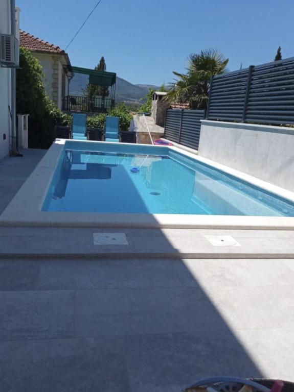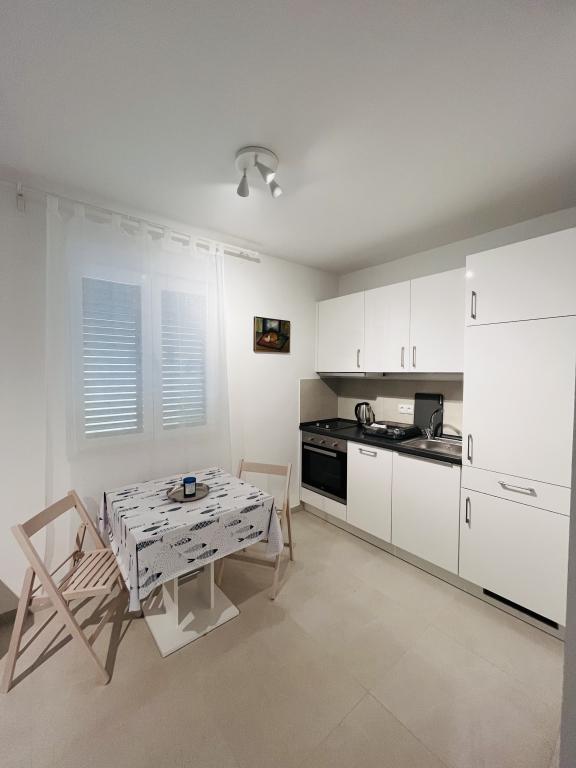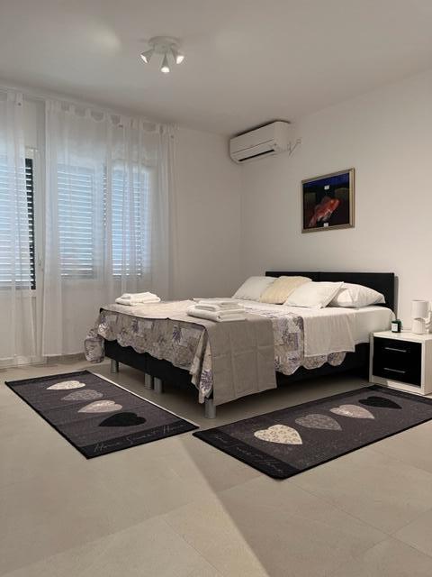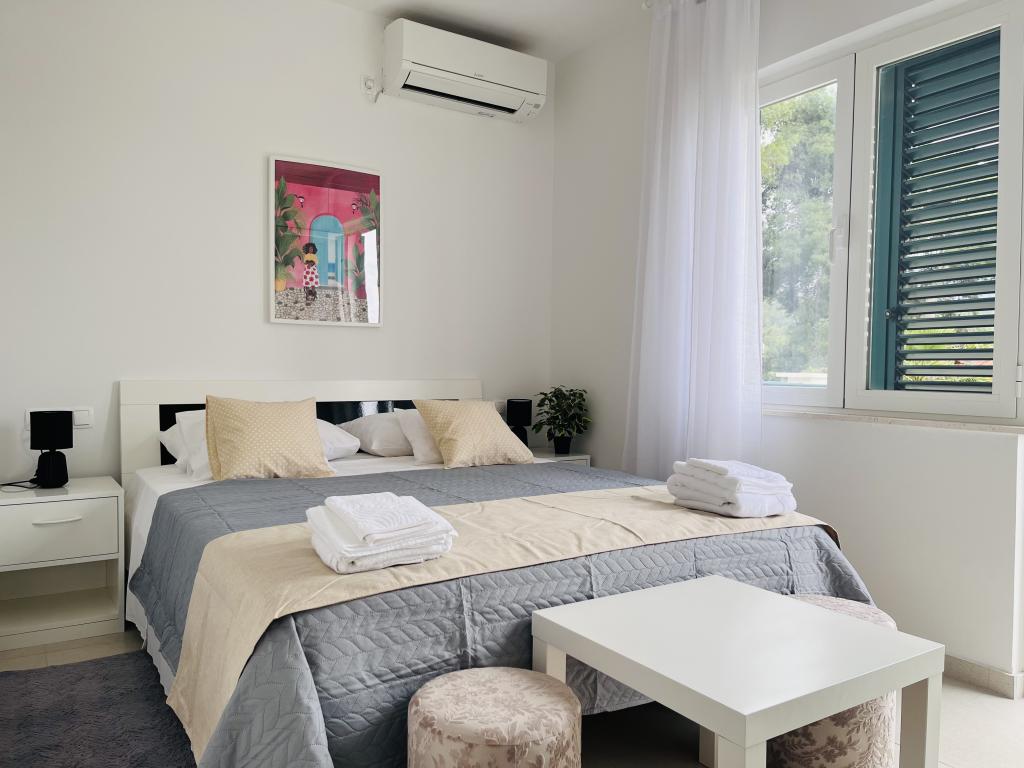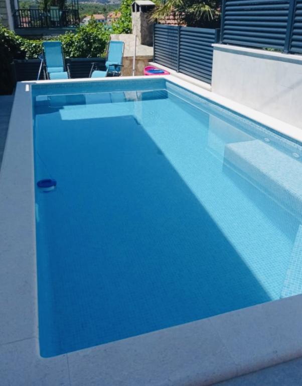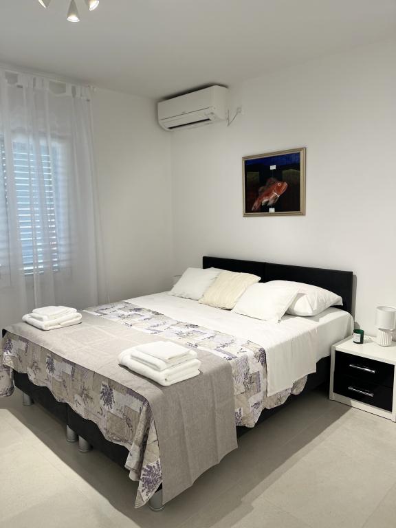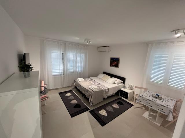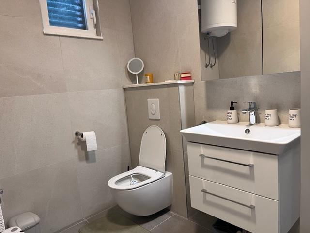 The apartments consist of two separate accommodation units with an area of 40 m2 and 33 m2 on the first floor of an independent house with a garden, located in the beautiful Dalmatian town of Vrboska on the island of Hvar, which is also called Little Venice. The house is about 200 meters from the center of the town, where there are shops, restaurants, post office, etc., as well as the sea. Both apartments are newly renovated, modern, air-conditioned and fully equipped, and guests have at their disposal satellite TV, free Wi-Fi and a safe. Both apartments have a balcony, the smaller one has a covered terrace of 10 m2, while the larger apartment has a covered terrace of 30 m2. Both apartments have the possibility of sharing a beautiful private swimming pool with associated equipment (loungers, shower...). A studio apartment for 2 people consists of a terrace, an entrance area, a bathroom with a toilet, a living room with a kitchen and a bedroom, while an apartment for 4 people consists of a kitchen with a dining room, a hall, a bathroom with a toilet, 2 bedrooms and terraces