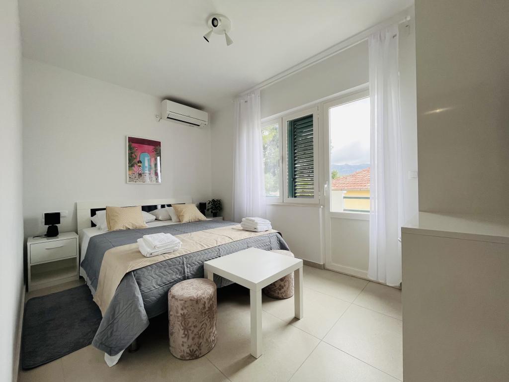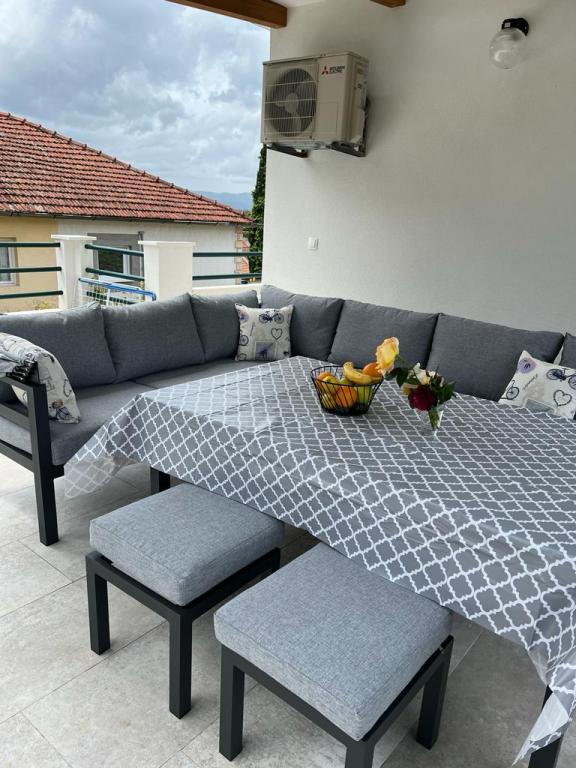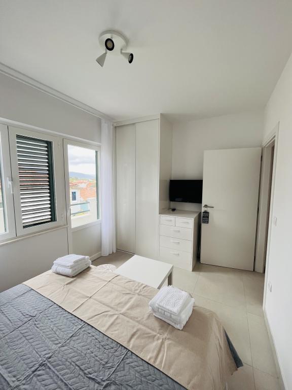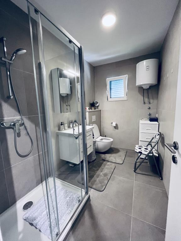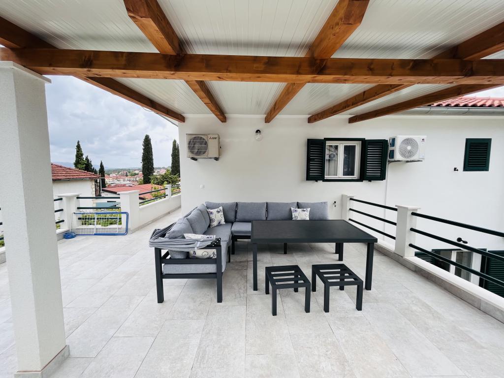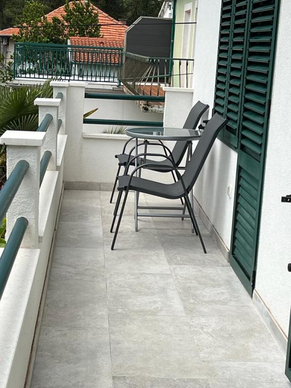 The apartments consist of two separate accommodation units with an area of 40 m2 and 33 m2 on the first floor of an independent house with a garden, located in the beautiful Dalmatian town of Vrboska on the island of Hvar, which is also called Little Venice. The house is about 200 meters from the center of the town, where there are shops, restaurants, post office, etc., as well as the sea. Both apartments are newly renovated, modern, air-conditioned and fully equipped, and guests have at their disposal satellite TV, free Wi-Fi and a safe. Both apartments have a balcony, the smaller one has a covered terrace of 10 m2, while the larger apartment has a covered terrace of 30 m2. Both apartments have the possibility of sharing a beautiful private swimming pool with associated equipment (loungers, shower...). A studio apartment for 2 people consists of a terrace, an entrance area, a bathroom with a toilet, a living room with a kitchen and a bedroom, while an apartment for 4 people consists of a kitchen with a dining room, a hall, a bathroom with a toilet, 2 bedrooms and terraces