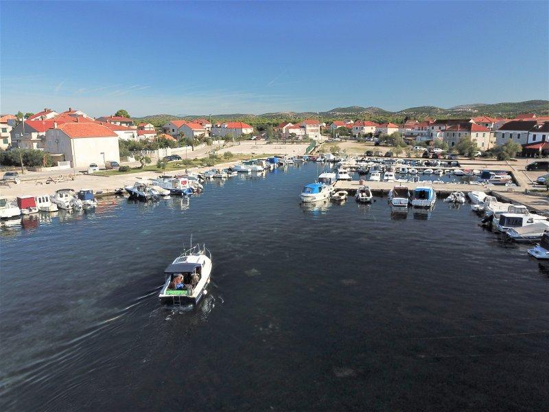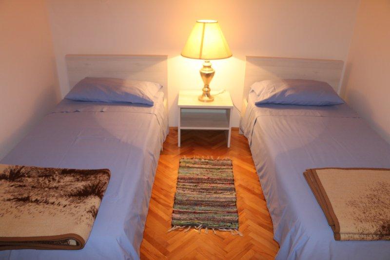 Fully equipped apartments in the center of Zablac, 50 meters from the sea and 200 meters from the beach, on the south side of the cement beach within the old pine forest and on the west side of the pebble - stone (natural) beach. A ten-minute walk separates the apartments from the SOLARIS Hotel Complex and within the same 2 kilometers of superbly decorated beaches with a variety of facilities for sports and recreation as well as top gastronomic and entertainment offer during the day and night. From these few words to conclude that each age group can meet their needs and enjoy holidays in our apartments. All apartments are fully equipped with all necessary inventory for a comfortable stay. Parking space in front of the house.