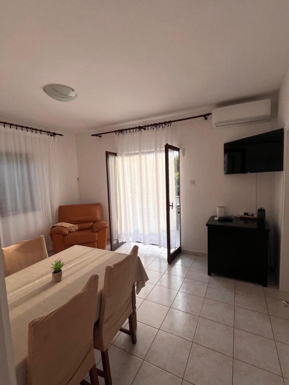 Welcome to our apartment located in a quiet and picturesque area of Žaborić, only 50 meters from the sea! The apartment is located on the ground floor of a family house and offers complete privacy, peace and comfort - ideal for families with children, but also for all those who want to enjoy a carefree vacation on the Adriatic coast. About the apartment: it is located only 50 m from the sea, with a spacious terrace, it has a private sunbathing area under the terrace, a large fenced garden (approx. 200 m²) - a perfect place for children to play or have morning coffee in the shade with the chirping of birds, guests can help themselves to homemade seasonal fruit from the garden for free - juicy figs and sweet grapes, the beach is fenced and safe - away from roads and all motor vehicles, which makes it ideal for children, private parking for 2 vehicles inside the yard, fast and free WiFi, TV with over 100 channels. Just 100 m from the apartment there is a bakery with daily fresh pastries and warm bread. Pets are not allowed.